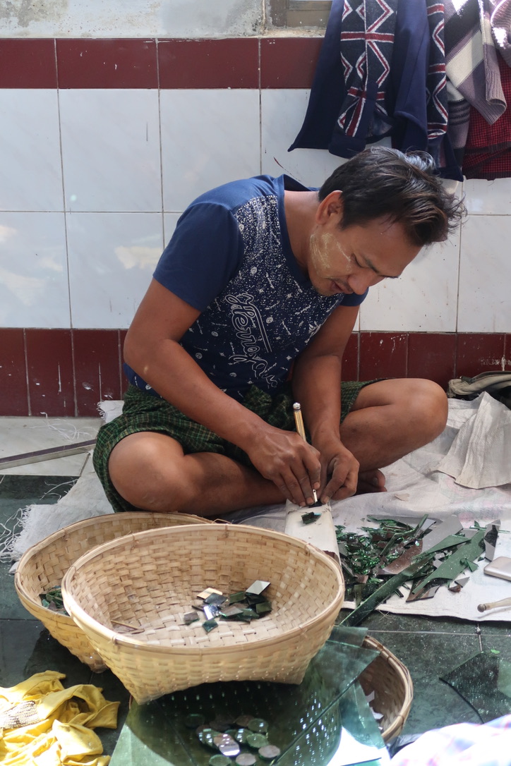 First impressions of Mandalay – a city of about 1.5 million people – seems like a lot of newer buildings and a lot of construction; scores and scores of pagodas and stupas between the airport and the city. We are supposed to be here for four nights, but we might shorten by a day and add a day to Bagan, enabling us to take the boat from here to Bagan (10 hours on the fast boat) rather than get a car (probably with a driver, since driving is pretty dicey – did it in Thailand and navigating the horses, goats, cows, trucks, motorcycles, buses, and the other cars was an exhausting and white knuckle situation). Anyway, we shall see… and you shall hear.