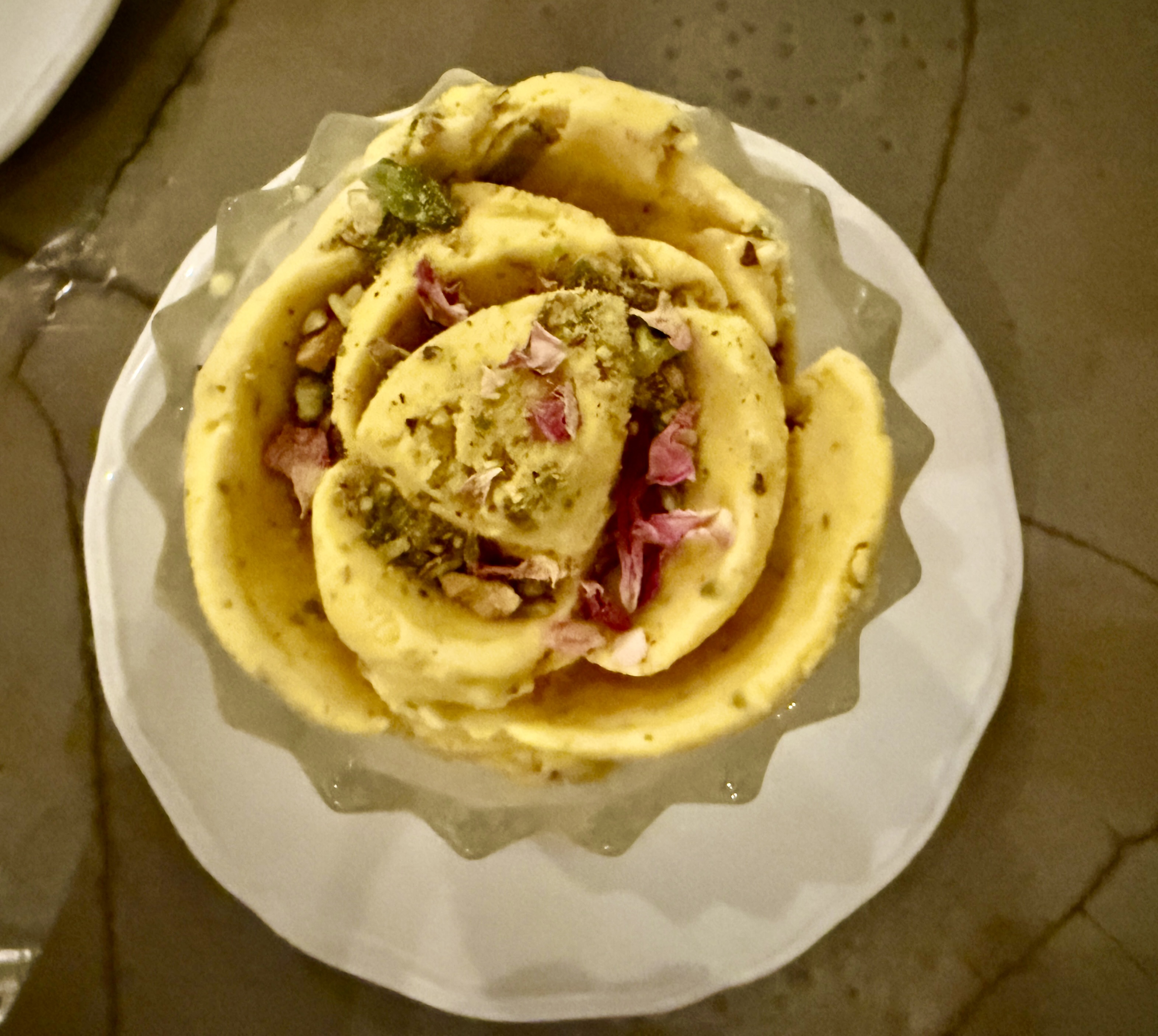 We walked to the restaurant down Flatbush Ave which was bustling and then had a wonderful Persian meal… A butternut squash with strained yogurt, chili roasted pepita seeds, and a spiced butter glaze; .. and a Persian flat bread with feta and herbs, walnuts, and radish; … and a sort of Israeli salad.. .all followed by a lamb shank that just melted in your mouth, cooked with butter beans, dill, and lime… alongside a complex basmati rice dish with carrots and rosewater and different spices (dill, fennel, cilantro I think). For dessert we had a pistachio/rosewater/saffron ice cream with a cardamom rose cake. Totally wonderful.