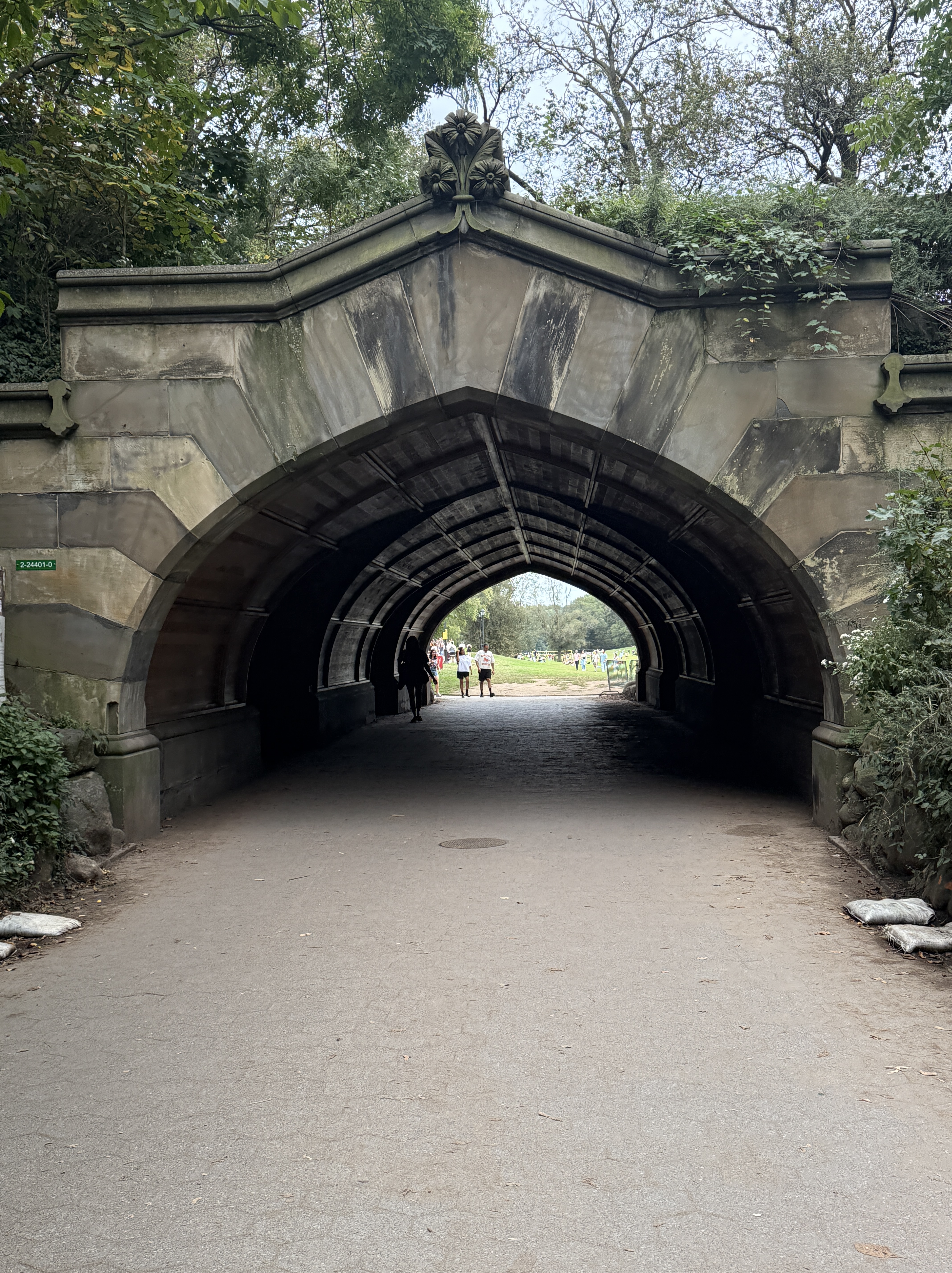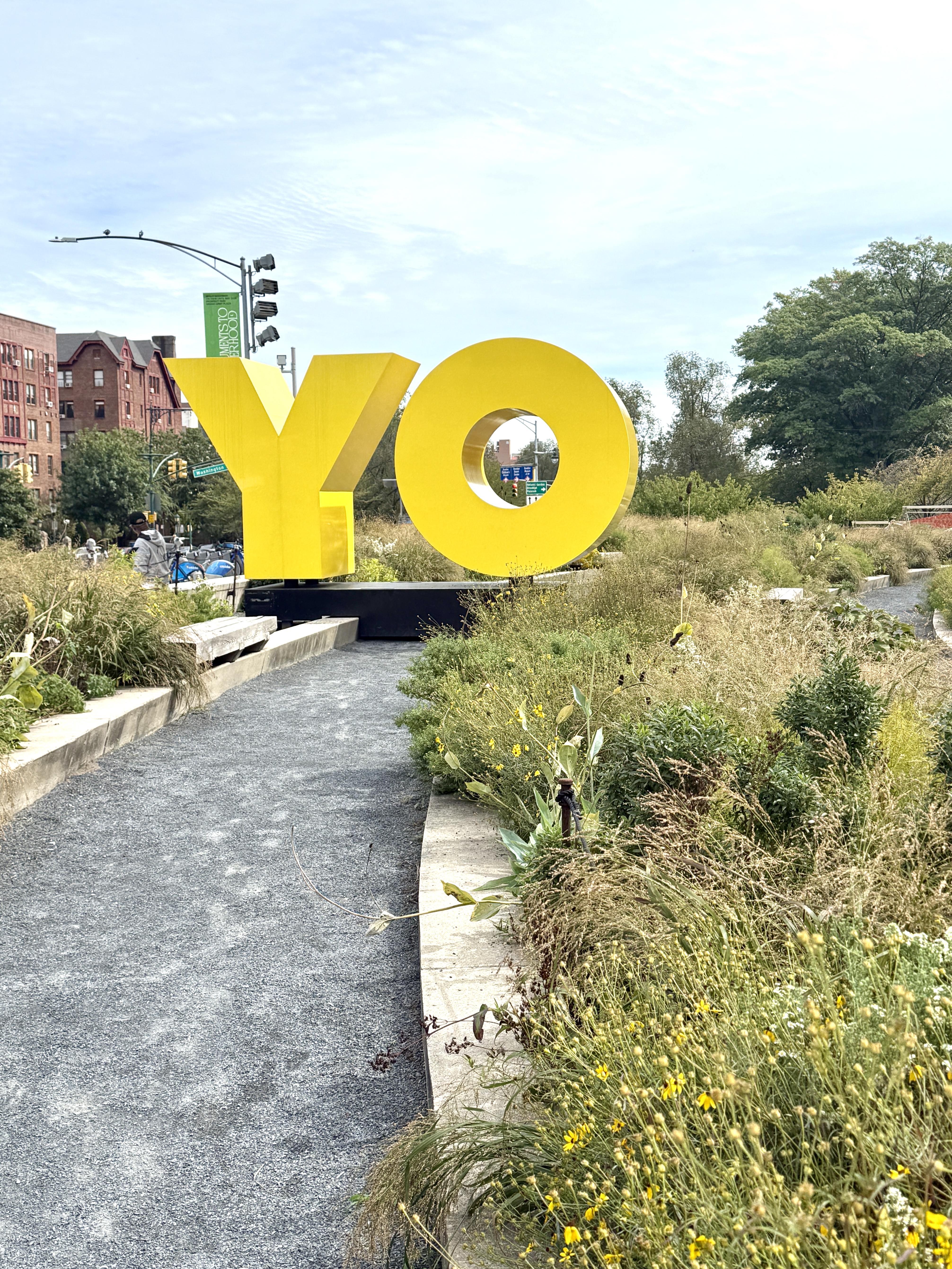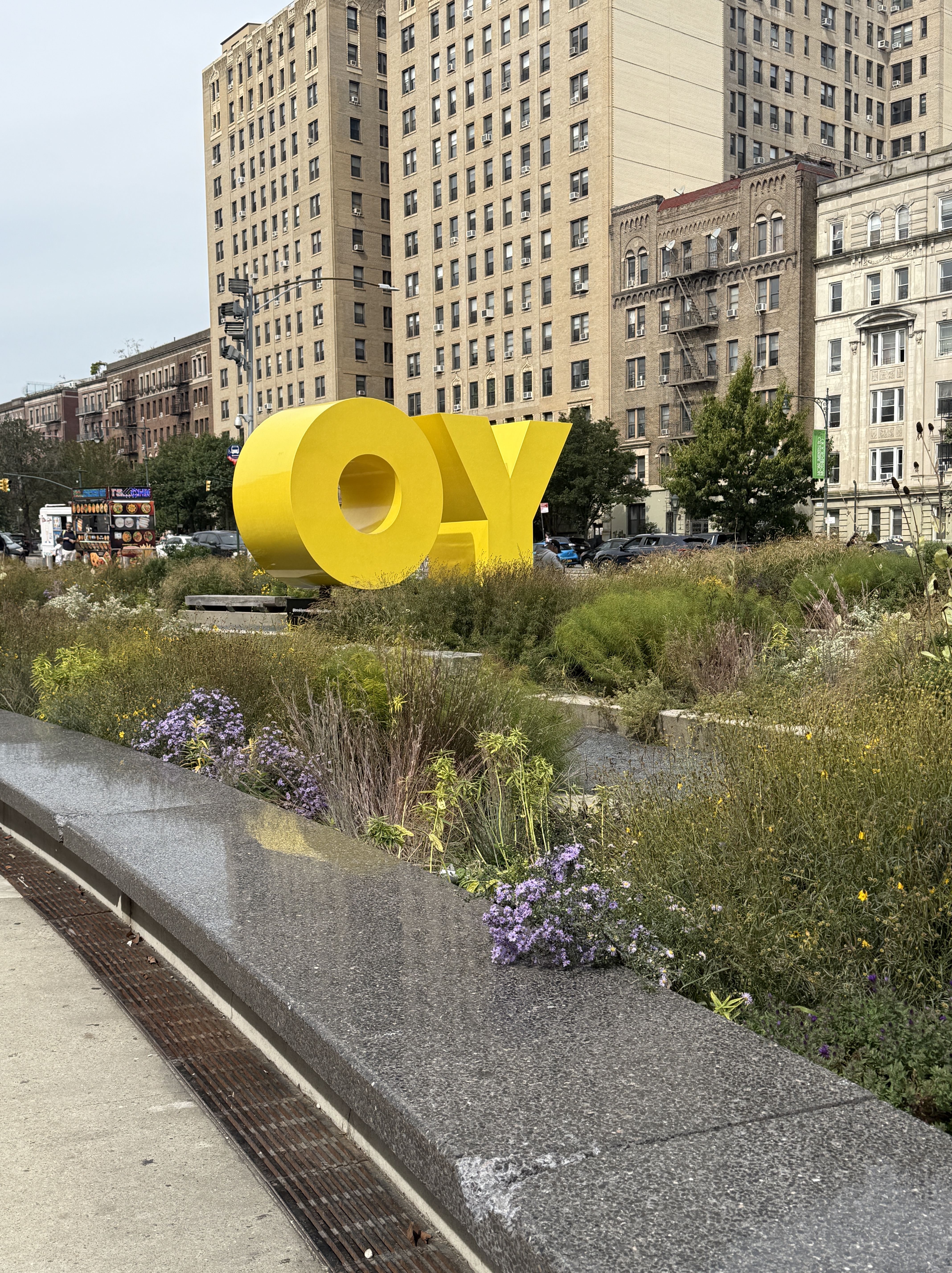 Then we took the car and drove through Park Slope winding in and out of streets and avenues, including making a pit stop in front of the building where Mike lived in an apartment with his mother and brother for about 21 years… and driving through Webster Plad–a very small street which includes a row of very well preserved Queen Anne homes with column porches and wood frames from the 1860s. Then we parked the car (no easy task to find a spot) so that we could walk —yes more walking to get to those 21,000 steps– into Prospect Park to stroll under and through the renovated Endale Arch. But we waited until sunset to see the newly installed LED lights which looks really cool from pictures I’ve seen. We waited and waited and peole-watched as families strolled through the park and as many people packed up their picnic gear to head home at dusk with tons of gear (badminton paddles, tables, chairs, balls, and of course dogs)… but the sun set and no lights. As we started to leave we asked someone about the lights which are supposed to turn on automatically at sunset (6:44 pm tonight)–and his response was very NY: “Probably broken. It is NY!”