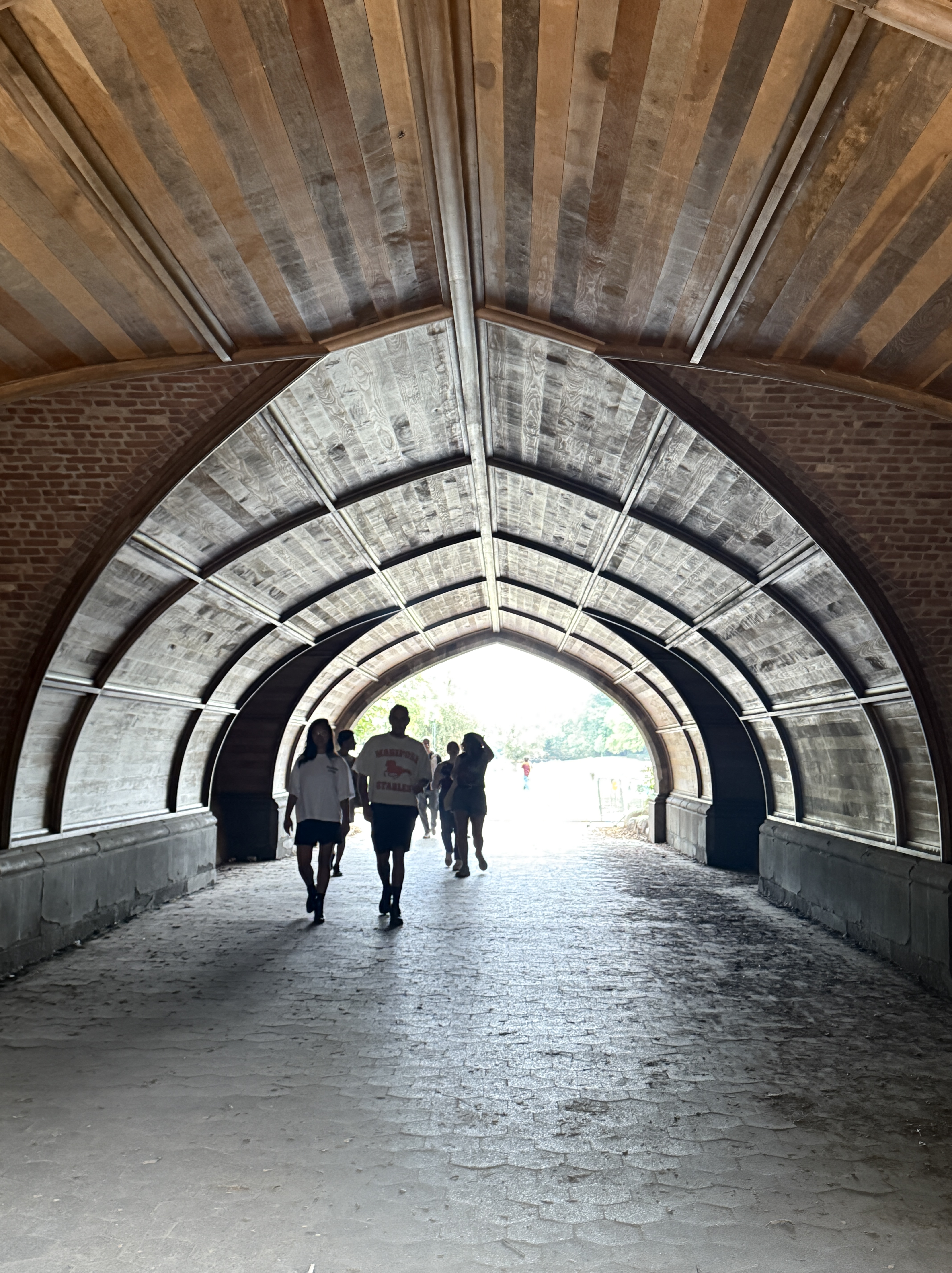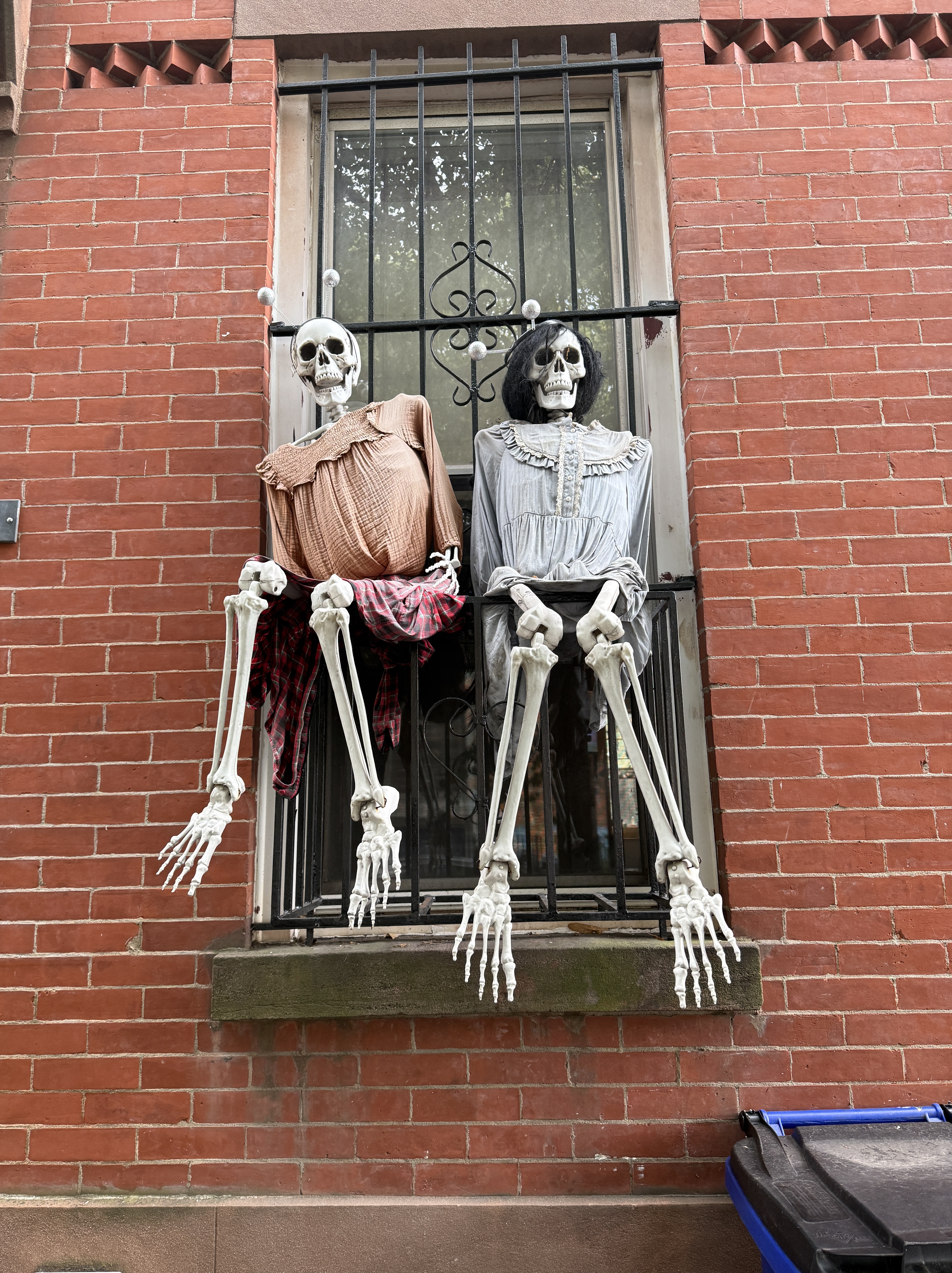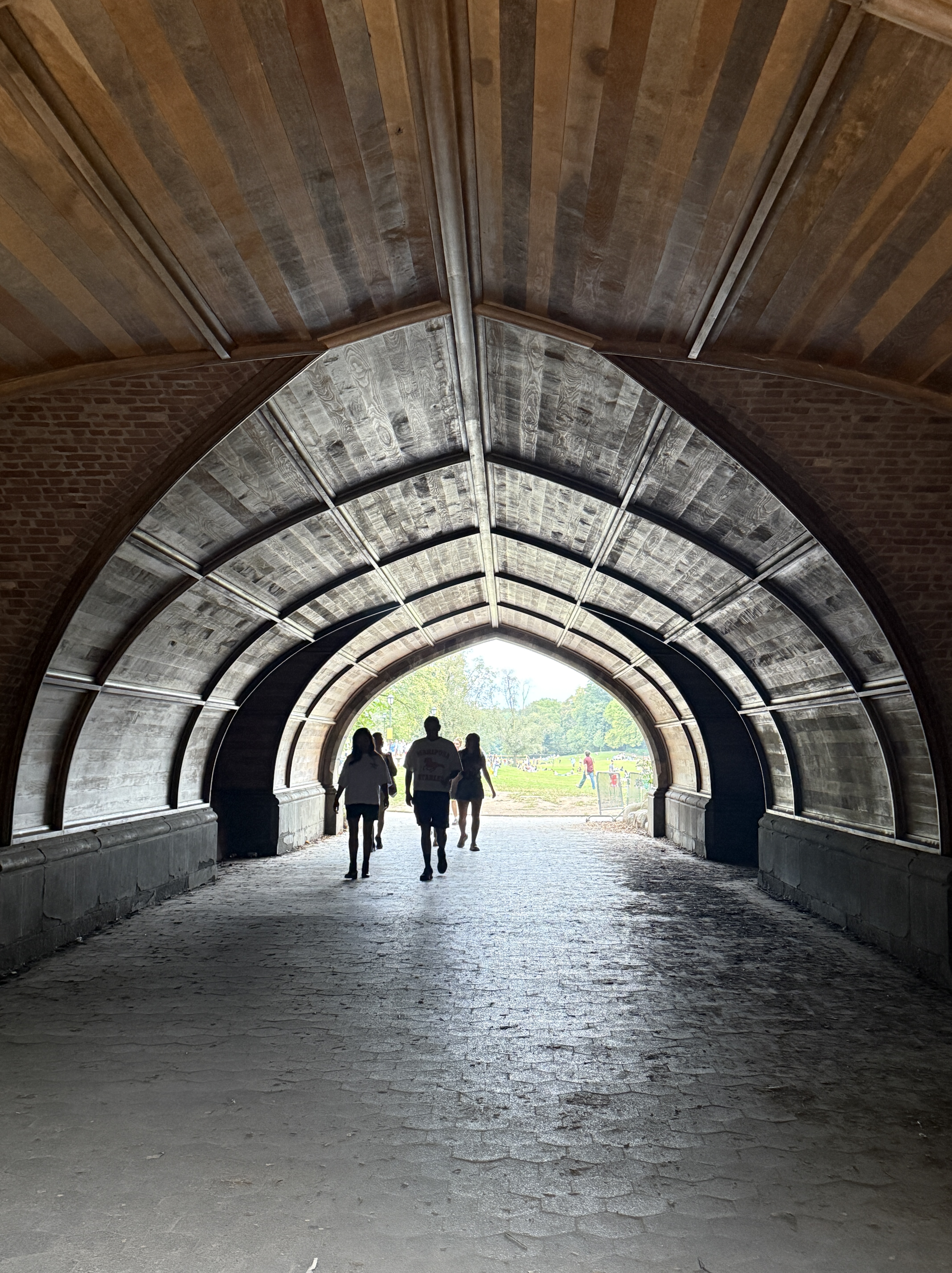 Then we took the car and drove through Park Slope winding in and out of streets and avenues, including making a pit stop in front of the building where Mike lived in an apartment with his mother and brother for about 21 years… and driving through Webster Plad–a very small street which includes a row of very well preserved Queen Anne homes with column porches and wood frames from the 1860s. Then we parked the car (no easy task to find a spot) so that we could walk —yes more walking to get to those 21,000 steps– into Prospect Park to stroll under and through the renovated Endale Arch. But we waited until sunset to see the newly installed LED lights which looks really cool from pictures I’ve seen. We waited and waited and peole-watched as families strolled through the park and as many people packed up their picnic gear to head home at dusk with tons of gear (badminton paddles, tables, chairs, balls, and of course dogs)… but the sun set and no lights. As we started to leave we asked someone about the lights which are supposed to turn on automatically at sunset (6:44 pm tonight)–and his response was very NY: “Probably broken. It is NY!”
