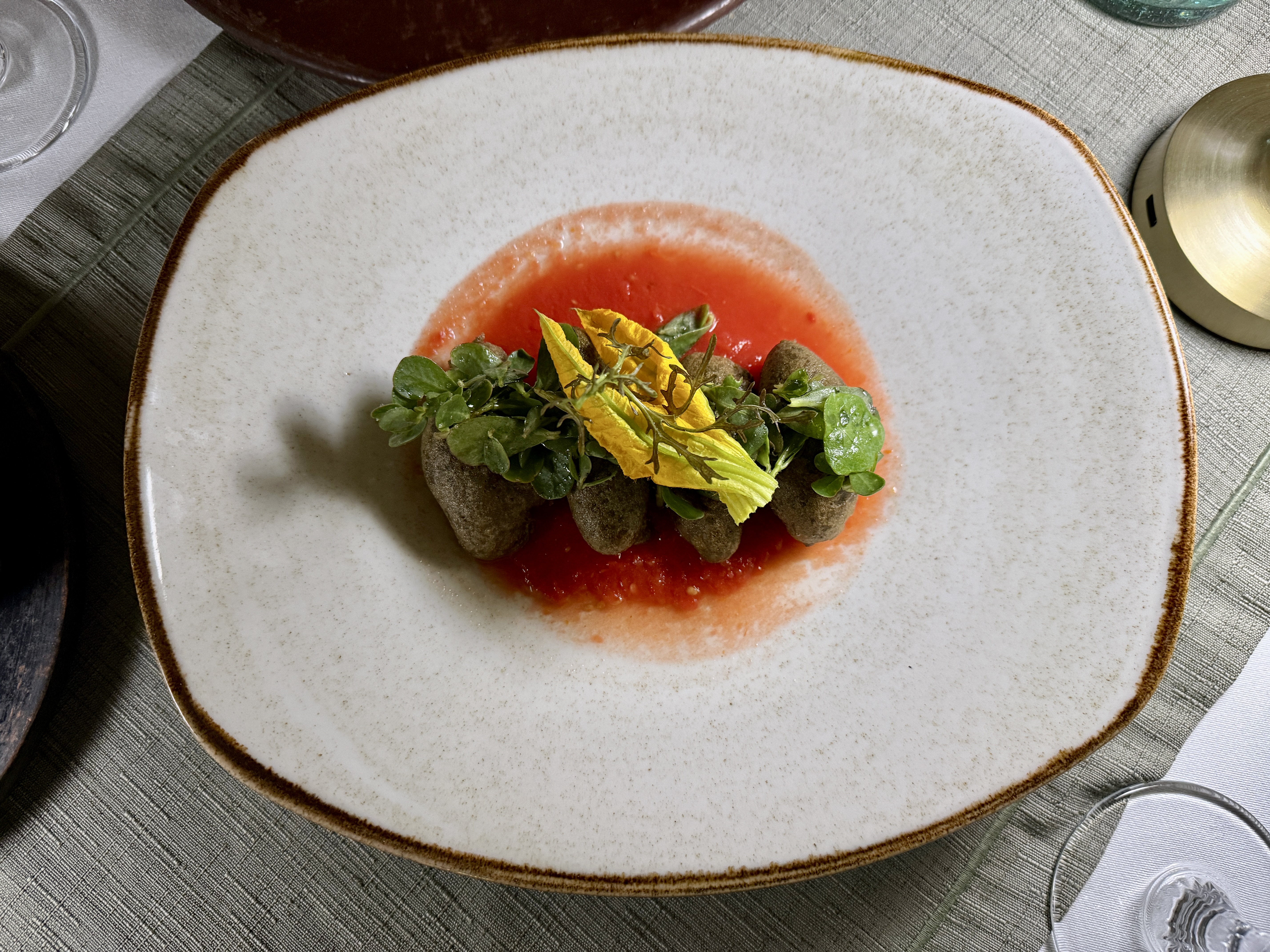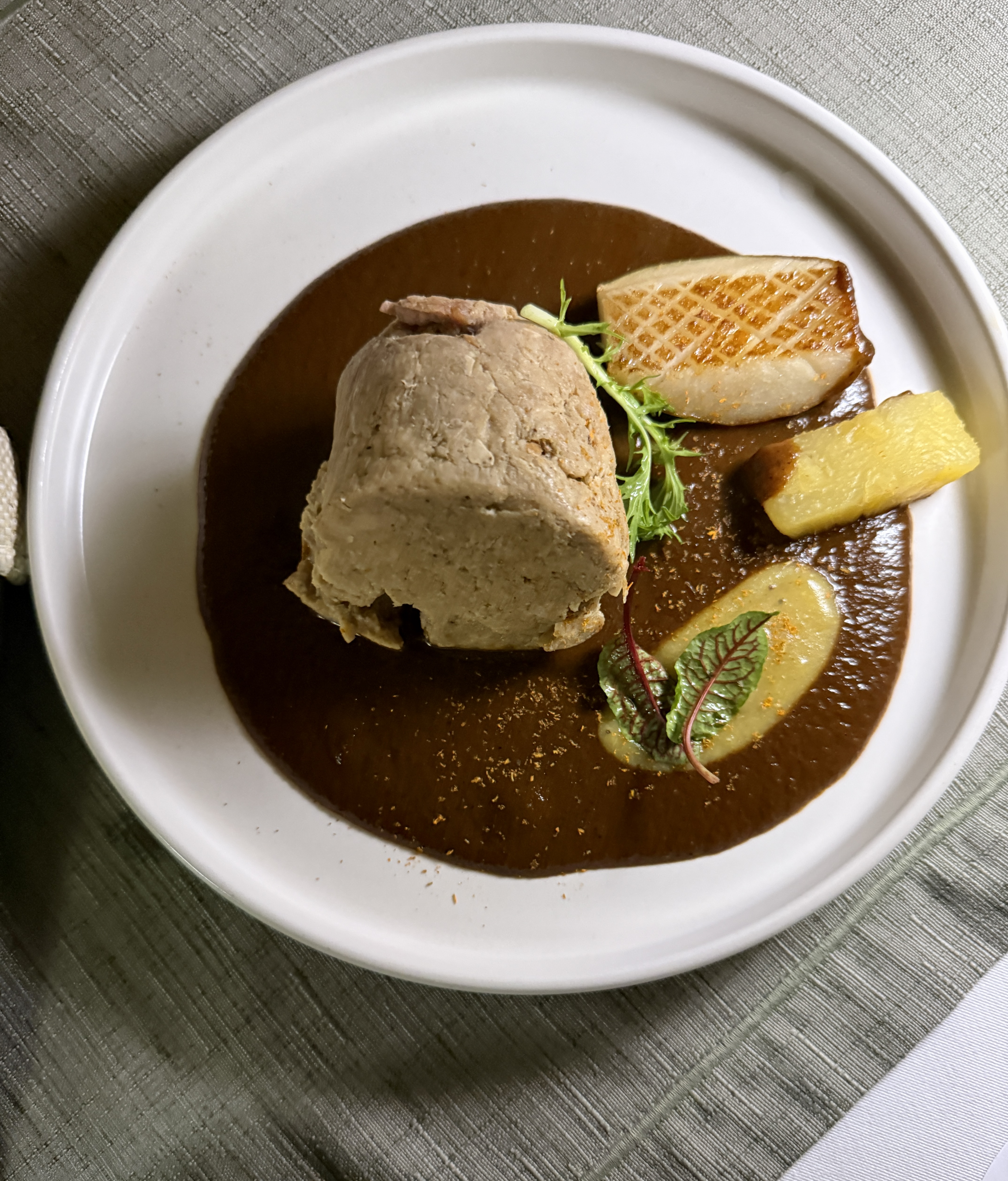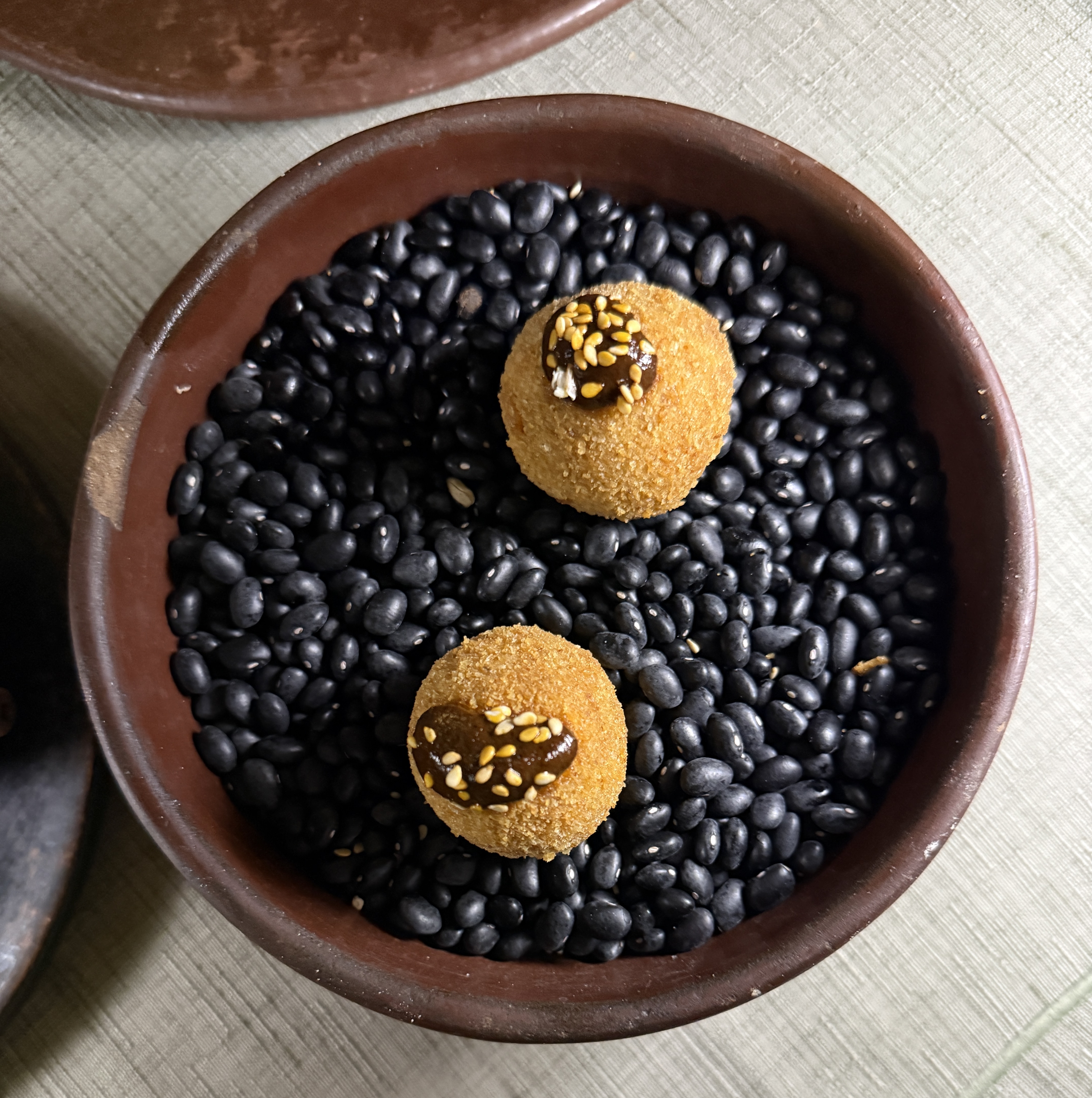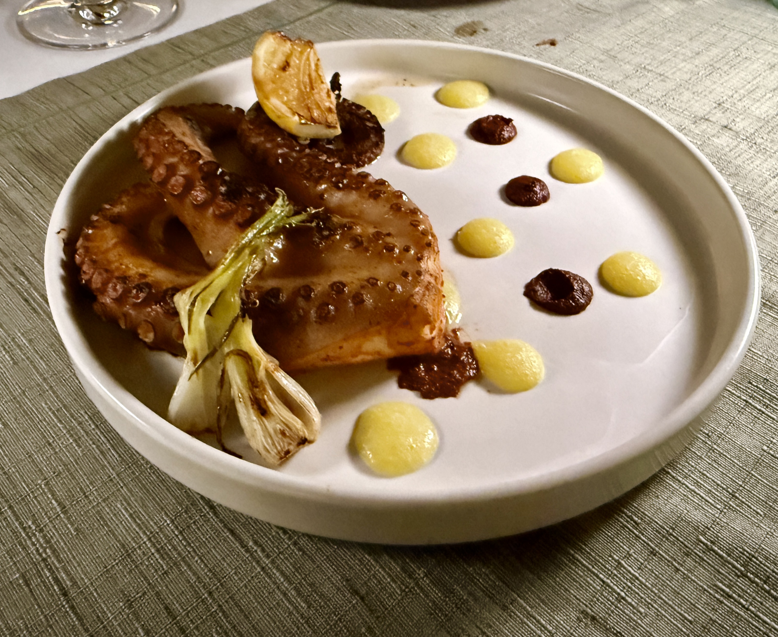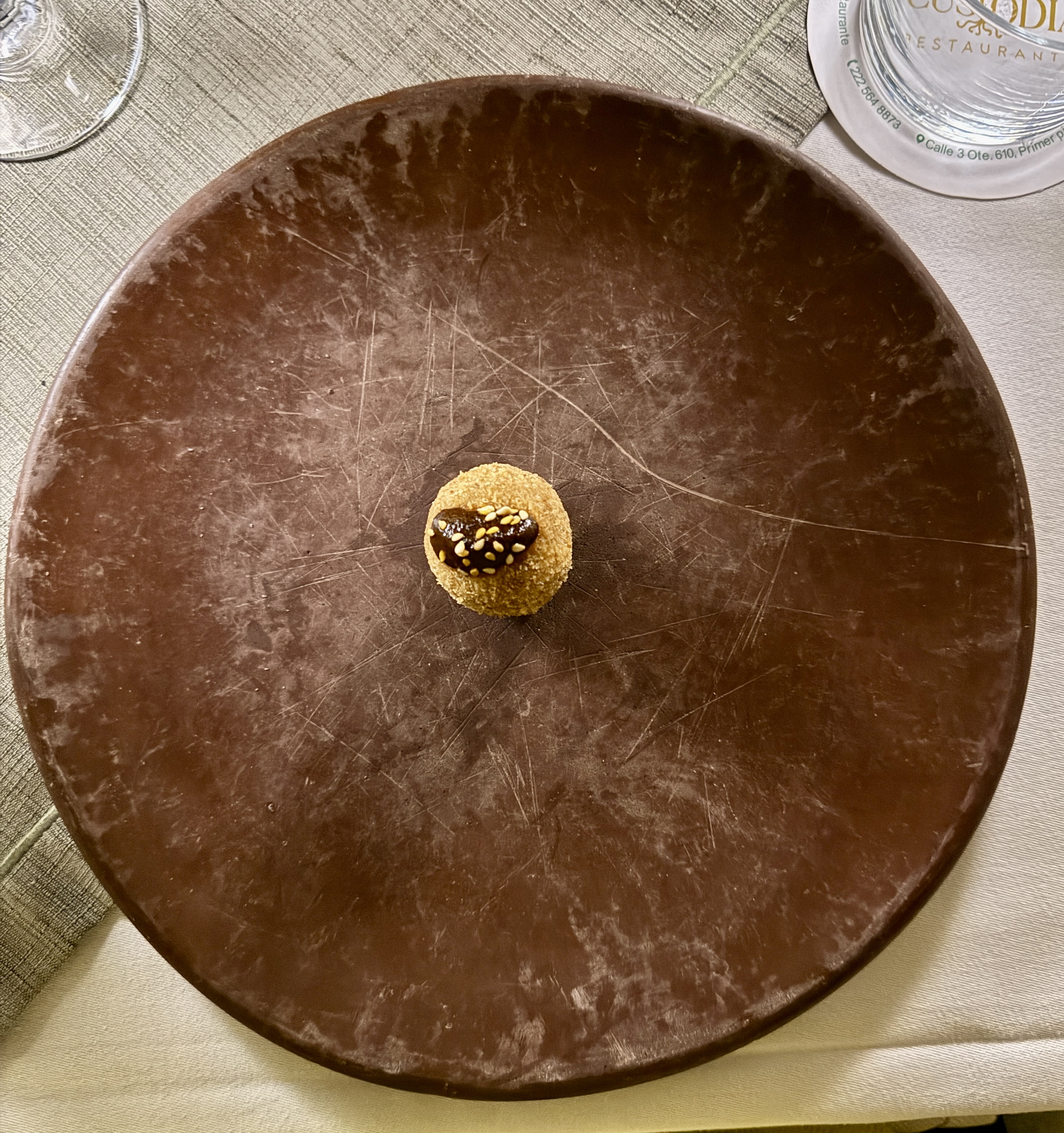 We ate at Custodia, a small, elegant restaurant situated inside a very small hotel in the historic district. After margaritas (each restaurant has their own recipe it seems) we had wonderful squash blossoms. The dish was called “Little Indian girls dressed in corn tempura” — the English translation. Basically squash blossoms with cheese sitting in a red sauce. Then we had the Manchamanteles with pork shank, caramelized pear, pineapple and banana; apparently, if I understood correctly, the confit pork shank was marinated for 8 hours. It had a sweet mole of fruits. And then we had the octopus dish which was cooked in pineapples. Custodia did not disappoint, except for the terrible hokey Christmas music playing in the background, after the pianist left. Oh I forgot they brought out a complimentary starter that was some kind of Mexican cheese mixed with banana and fried. Very yummy.