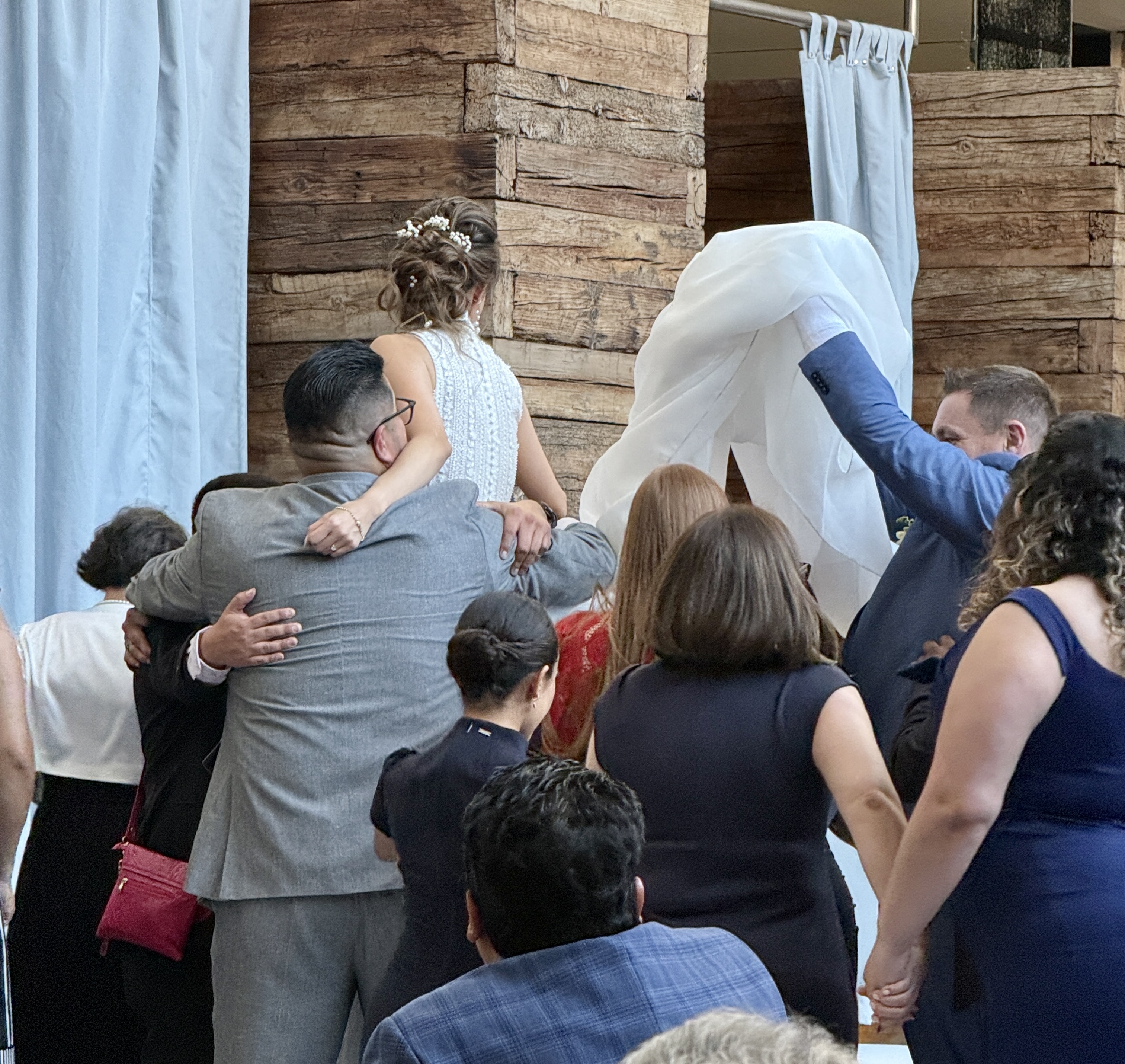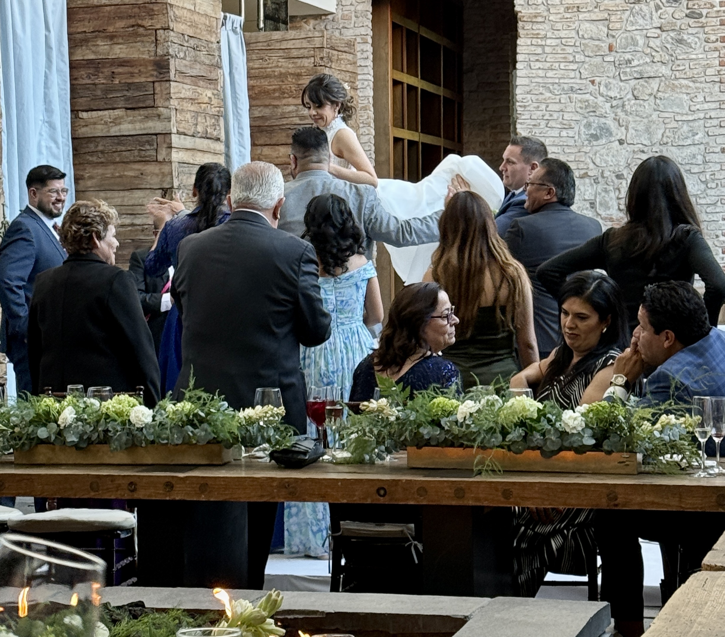 We walked back to the hotel to pack and get ready for dinner. When we arrived back at the hotel there was a wedding taking place that occupied much of the lobby. We watched the doings for a while. they had a few interesting customs. The bride stands up on a “pedestal” and the groom holds up her very very long veil/train and the guests walk under the veil… to loud music. Then they sort of snake around the room and around the bride and go back under the veil backwards. I’m sure there’s some sympolism there but I fail to pick it up.