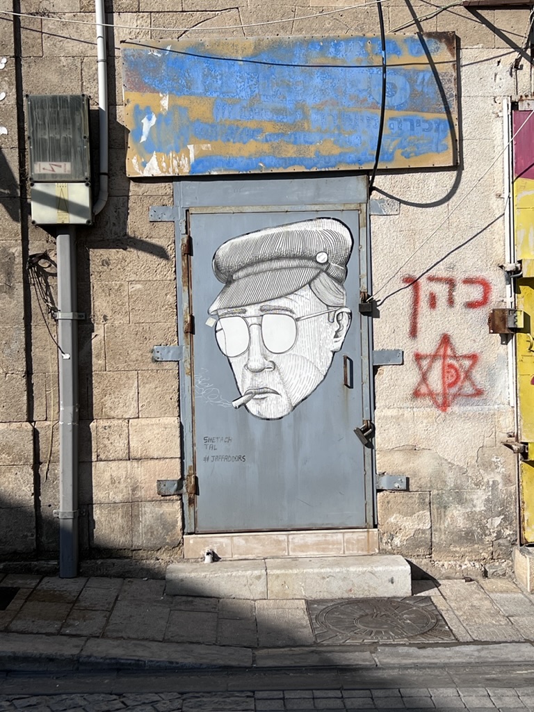 Jaffa is the southernmost and oldest part of Tel Aviv (and it seems that many people refer to it as Tel Aviv-Yafo; it’s a port city that is associated with many biblical stories and also mythological stories, It’s also known for its oranges. My mini-research effort says that approximately 37% of the city is Arab. The city’s history is complicated and I’m sure many of you reading this know a great deal more than I about the many different controversies surrounding the area over centuries. (And today, many just see Jaffa as an extension of Tel Aviv, but I think it is a lot more distinct than that.) I believe that Jaffa’s seaport is more than 4,000 years old (oldest harbor in continual use?) Because only small ships could enter the port’s narrow entrance, Jaffa eventually ceased to function as a trading harbor and now it’s home to small, local fishing boats and some small yachts. But as you meander the little streets and alleyways, it’s easy to imagine it filled with traders who arrived by sea transferring goods to camel caravans destined for Cairo, Jerusalem, and beyond. In any case, as I understand it, Jaffa always had a large Arab population; in the last half of the 20th Century, it was home to impoverished Arabs and Jewish immigrants from Arab countries.