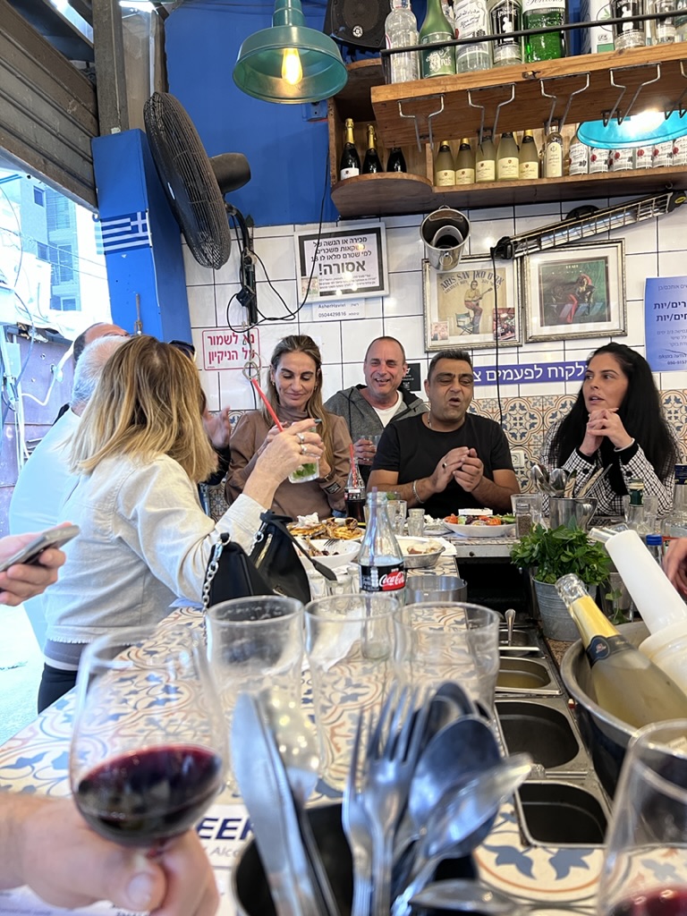 According to my Shazam app, the songs that were playing with literally everyone (except us) singing along very loudly and knowing all of the words came from an album by Gabi Shoshan (love that Shazam!) As we were paying, two people were trying to grab our seats and we chatted very briefly. They said that Israel is good, but that the political leadership of Israel is terrible—they said if you can rate someone as a zero, Netanyahu would be seven time zero.