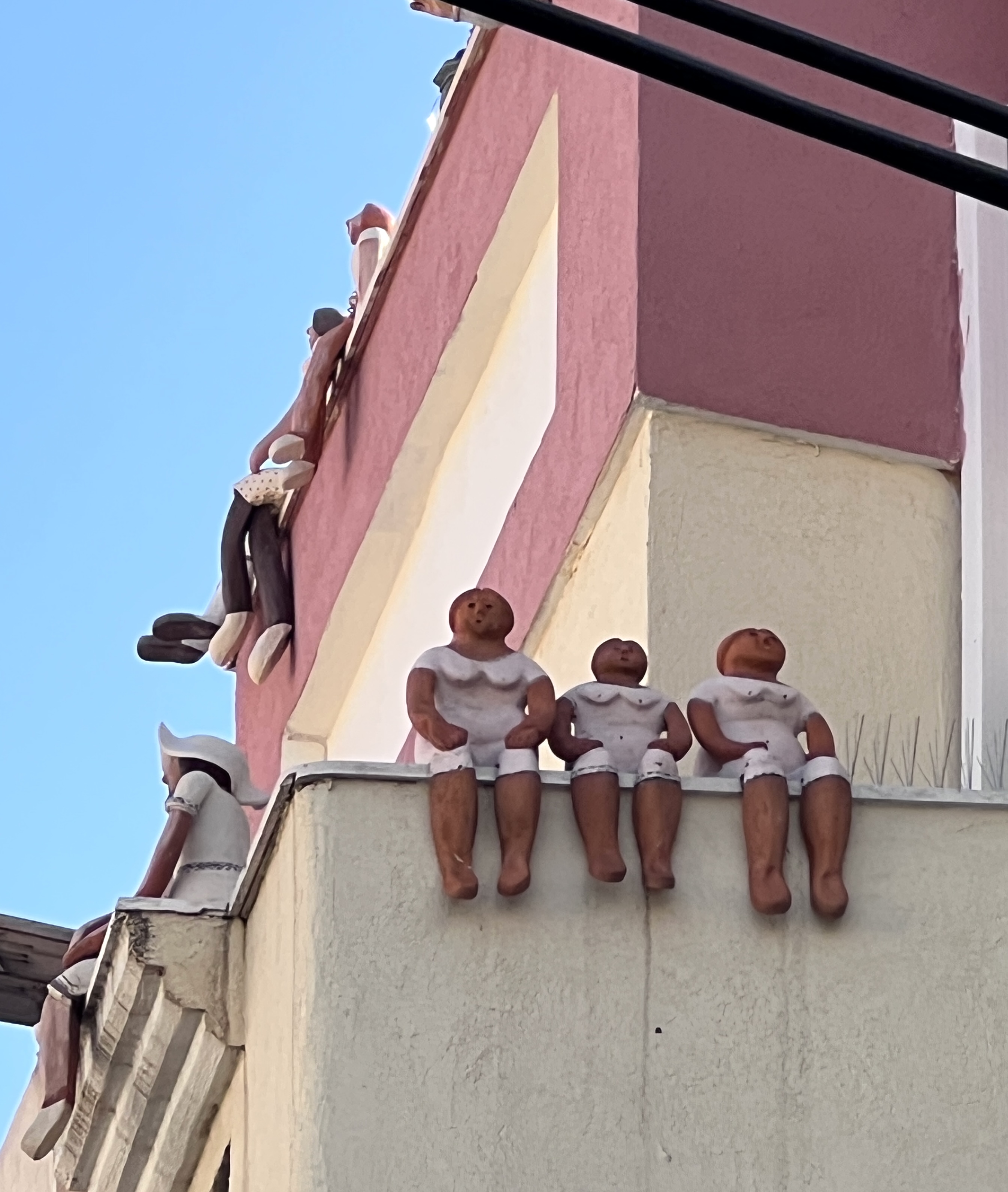 We walked through another area near our hotel filled with murals and then headed to the areas we had not walked yesterday when the rains started. Initially we headed to the long linear park that edges the beach. It was sunny and Saturday, so everyone seemed to be out… soaking in the sun, biking, walking, or sitting in the park area. Mike decided to join the “sitters” in the sun and I strolled ahead meandering through many different neighborhoods and sweet alleyways and pedestrian streets with interesting housing and shops.