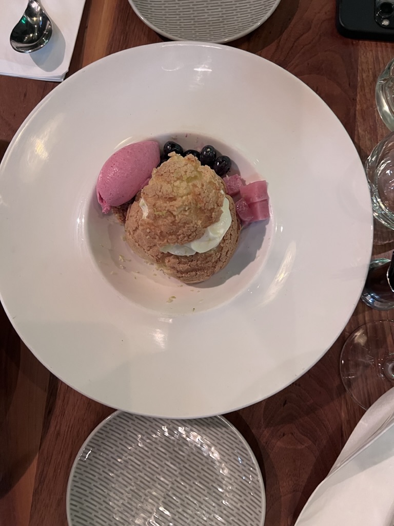 Tonight we ate at Mona, which was listed as being in an “artist’s house”.. which I expected to mean a little cottage. But it was a large elegant building with a stone-walled garden and a working fireplace. It had a rustic feeling although it had a totally modern menu. We started with a beef tartare and an agnolotti stuffed with meat and sitting in a red cream sauce. For the next course we had veal sweetbreads cooked with another wonderful and unusual sauce. We also had barr fish (It’s like sea bass) filleted and sitting on wonderful lemon linguini. Ended the meal with a lovely cheesecake.