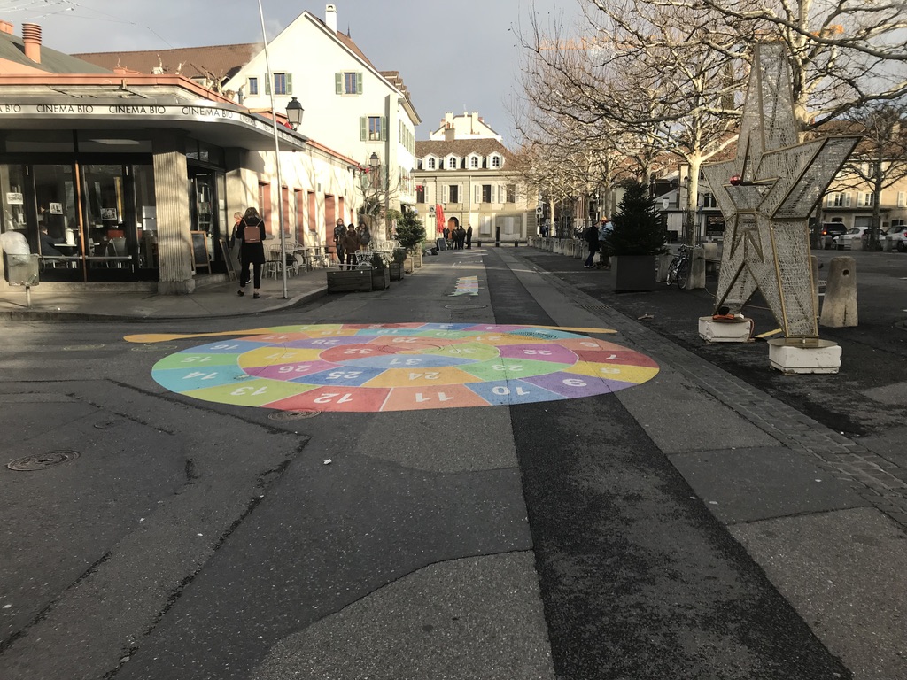 Wild Girls Logo: café where I had lunch on the 27th with Julia; streets on the square in Carouge have lots of painted “street games” on the plaza – very kid-friendly; on the street in Carouge; baby Louis looking pretty peaceful.