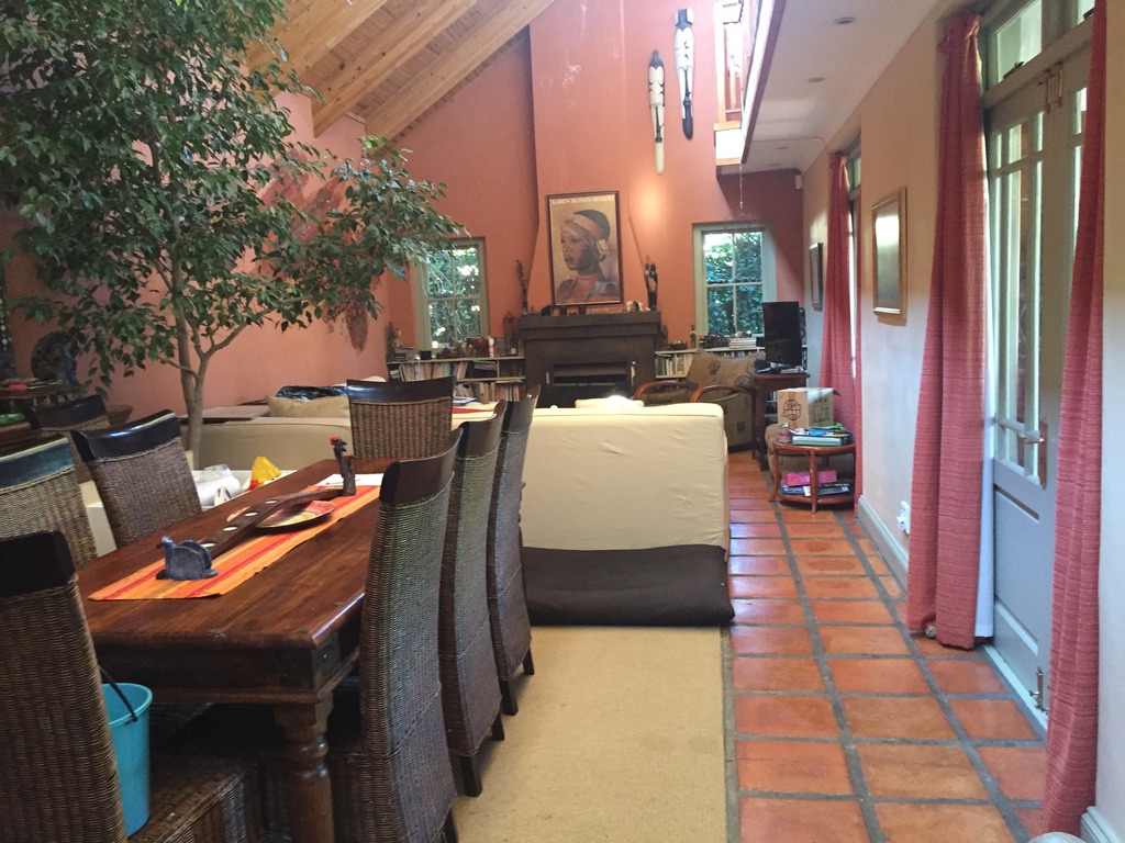 While in the museum I got a text from Chris that he was meeting up with Jennifer (the African American singer from Oakland who is here on a residency program) to go to some brunch place in the Seapoint neighborhood (on the water). Seapoint is one of Capetown’s more affluent areas and is situated fairly close to the Central Business District. The neighborhood has a significant number of high-rises and appears to be divers (Whites and “Colored” and also a lot of foreigners… I decided to join them at the brunch which was at Harvey’s at Winchester Mansion. Turned out to be quite a feast, a buffet that can match the best ones all over the world. We truly stuffed ourselves – champagne, sushi, muscles, smoked trout, salads galore, omelets, etc. as well as incredible roast beef and roast pork… and of course amazing desserts. But then we remembered that we had plans to go to the home of one of Chris’ friends (an immigrant from the Congo who recently had a baby) for a home cooked Congolese meal!