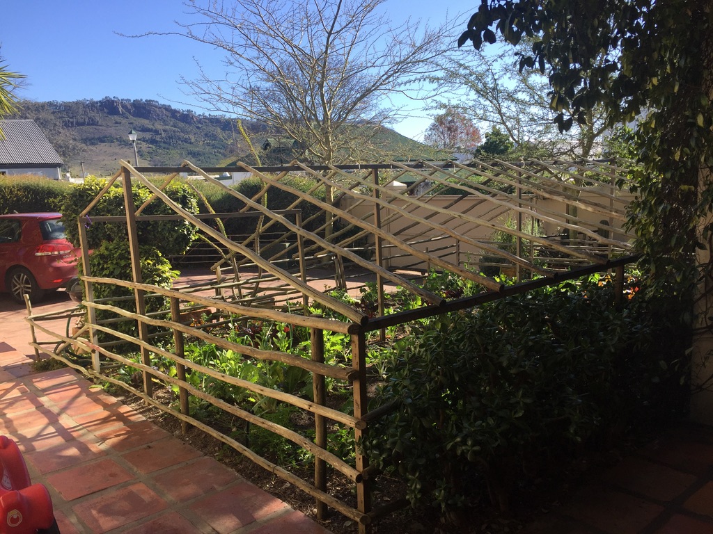 We met at his house which is a wonderful large, rambling place… then because he had a meeting mid-day, Chris and I drove up to a great lookout to see the whole valley and then strolled the town for a bit before settling on a place for lunch – Wonderful grilled calamari with tomatoes and garlic and fresh herbs… and a vegetable flatbread, topped off by dessert – some kind of brandied bread pudding with ginger ice cream… and of course the wonderful wines of South Africa. We then went back to the house for lots of conversation about state of health education in South Africa, politics (the recent elections in South Africa and upcoming American fiasco elections), sports and education as tools for peace (his wife’s project). Both are transplants: he is American from New England, but had lived several years in India before coming to Cape Town and she is German, but has lived in South Africa for about 25 years. Two children; one adopted African child.