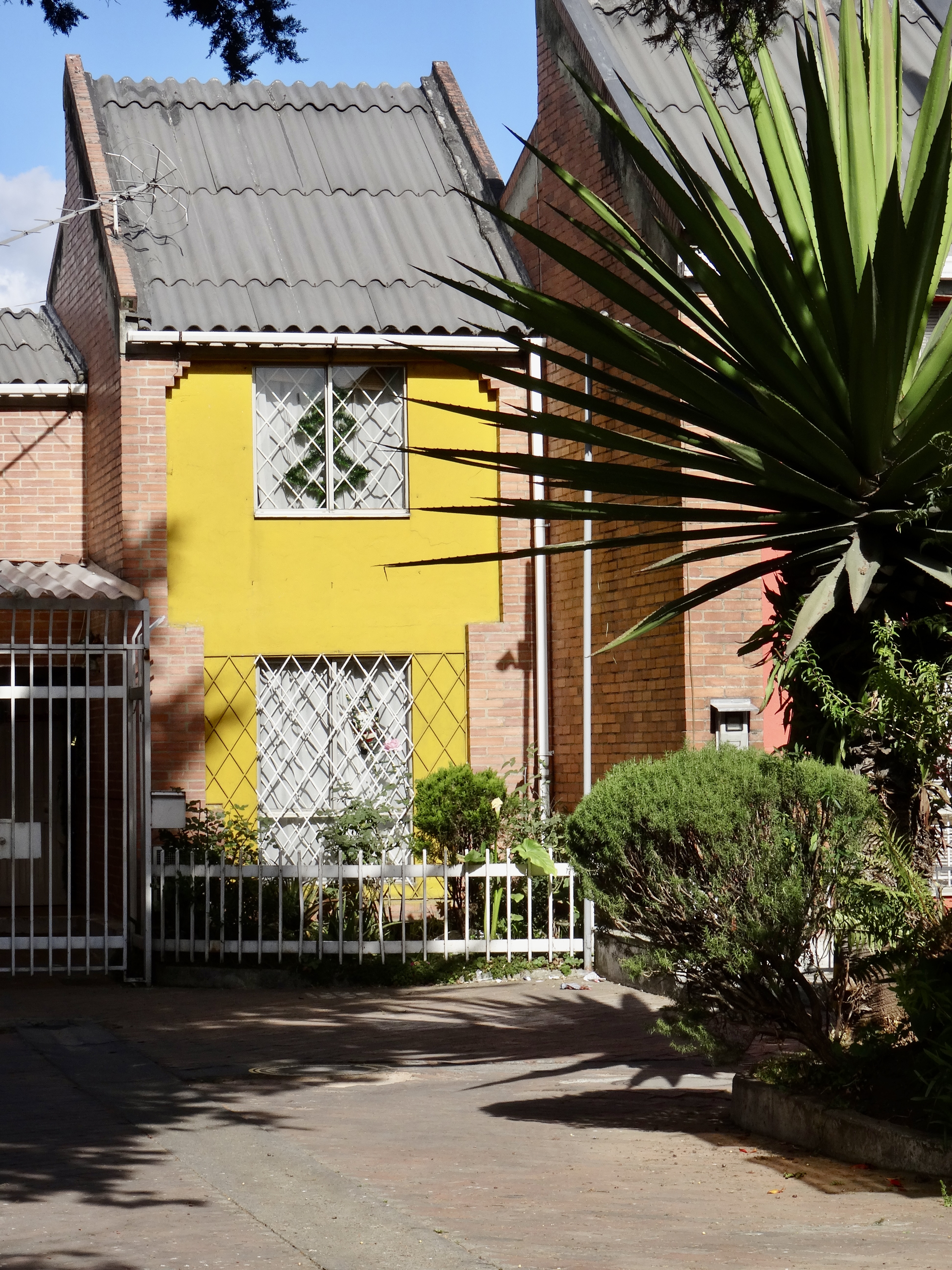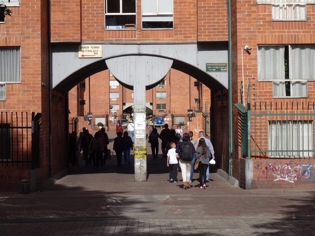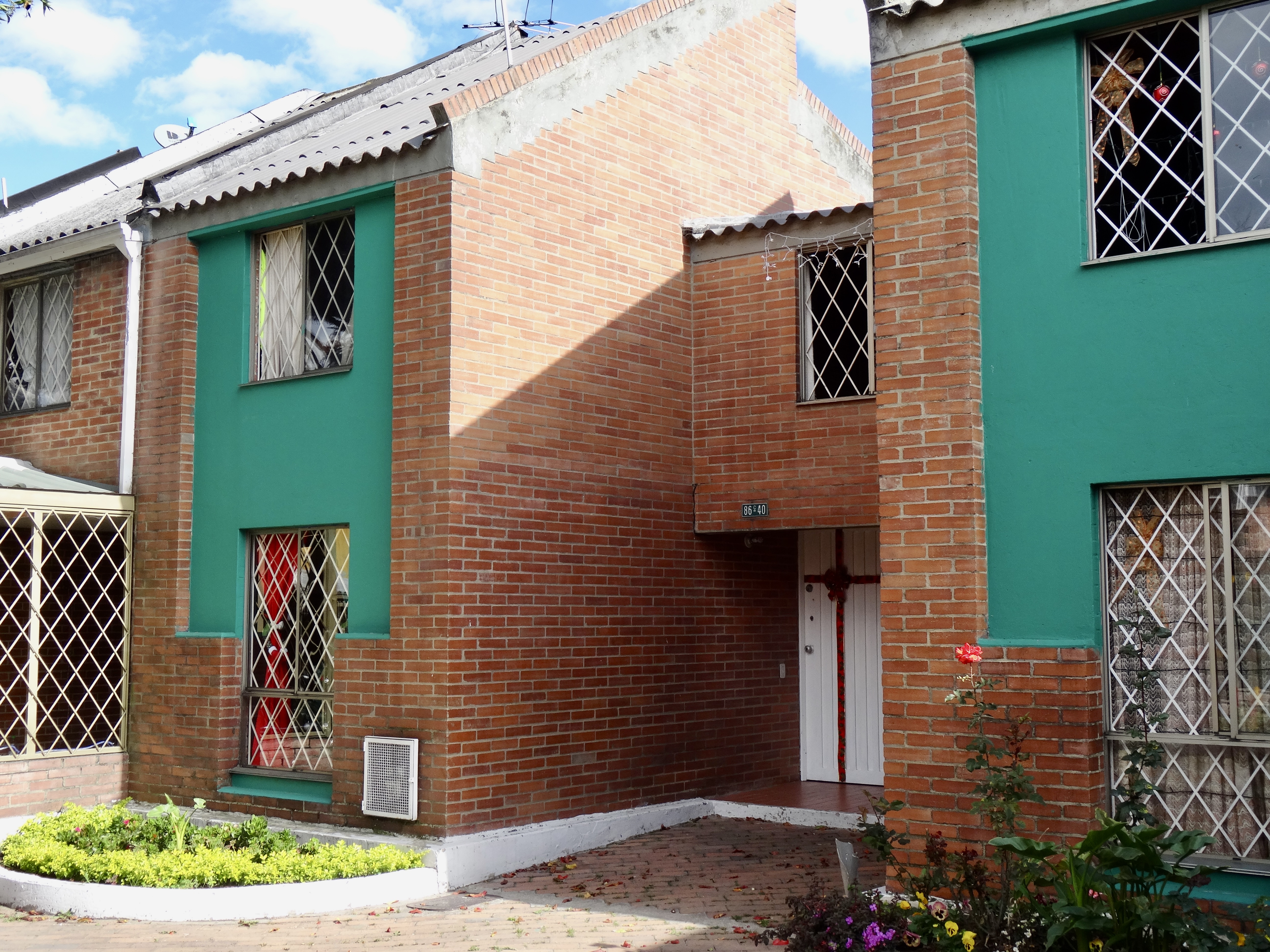 Finally we picked up our real “guide”… Sylvia’s architect friend, Ximena.. and the “tour” began. We visited (walked) about four different projects on the west side of Bogota.. and along the way many others were pointed out. Many were designed by Ximena’s father (who is in his 90s and is still coming into the office) and some by her, although they were mostly self-built or combination of contractor built and self-built… For example in one case, families got a two story shell (no interior walls or finishing) and they also got “approved” plans and five options on how to construct a third floor (which by now — after 20 years or so) are all built up.. In many of the projects the first floors were purposefully designed to be shops so that residents could set up small stores and earn money where they lived above. We also visited projects that were five stories (obviously not self-built) — all walk up, no elevators. Plans for the projects were quite good with parks and child care centers and walkways throughout. In nearly all cases, parking was outside of the project site.