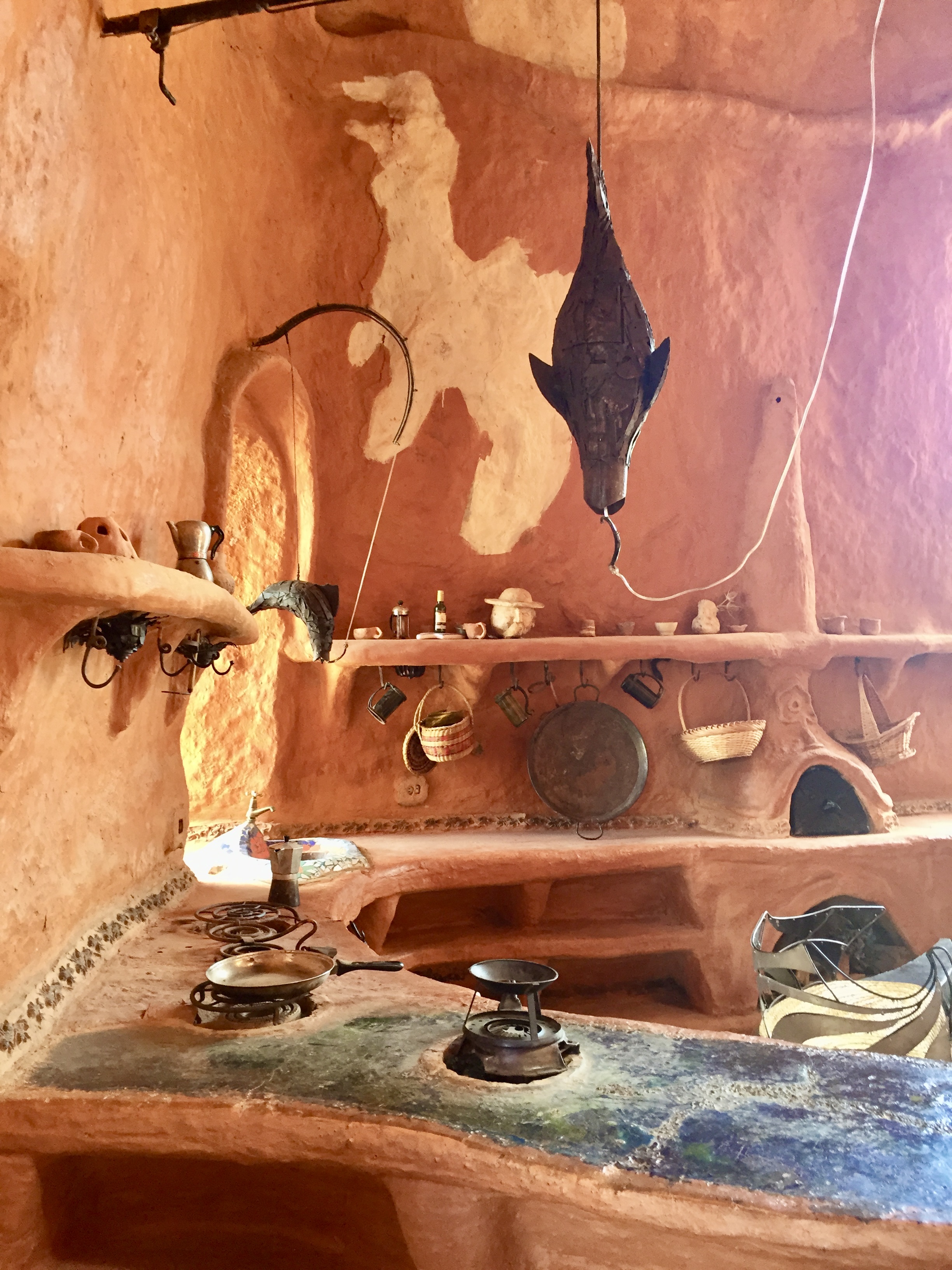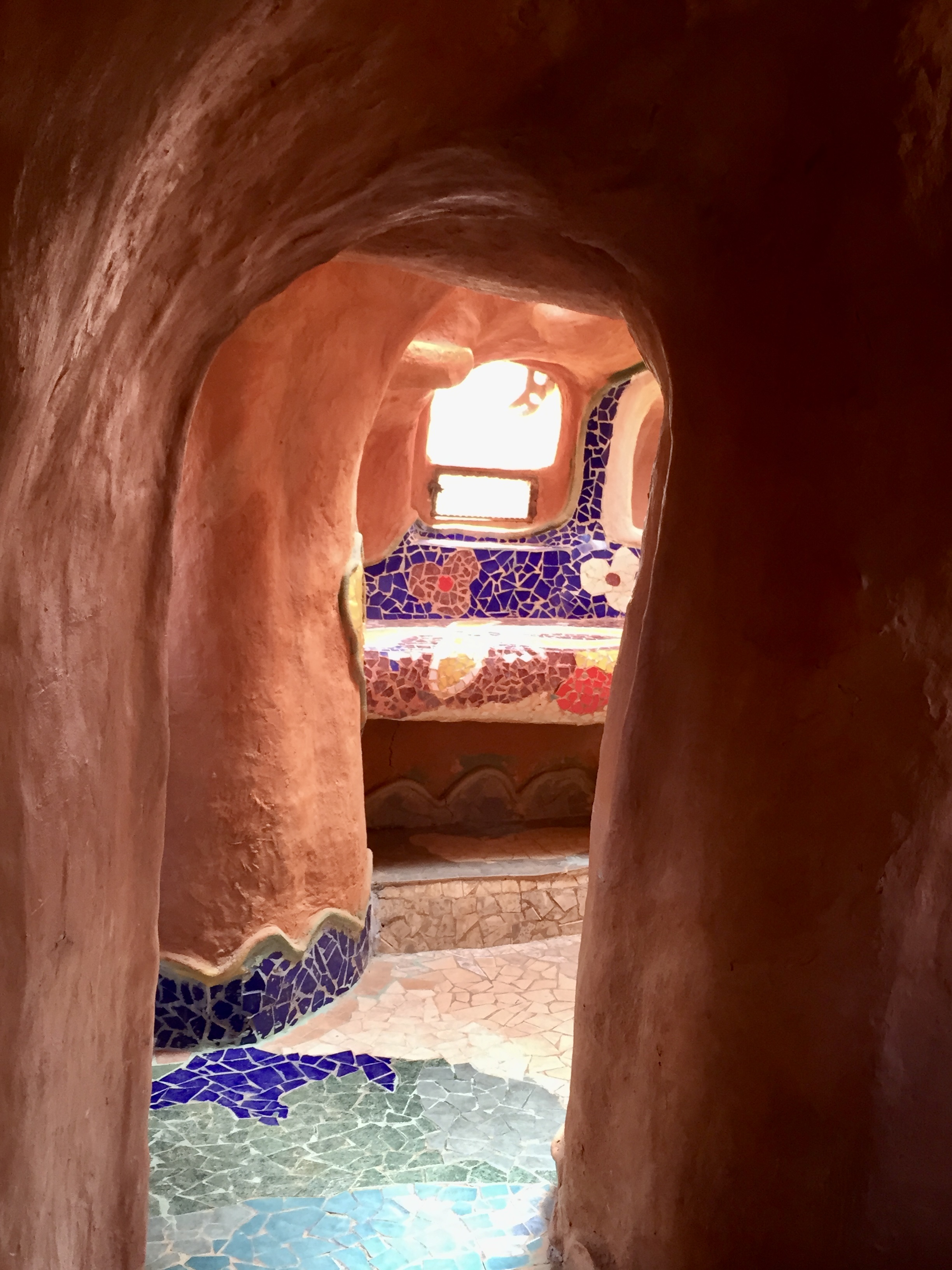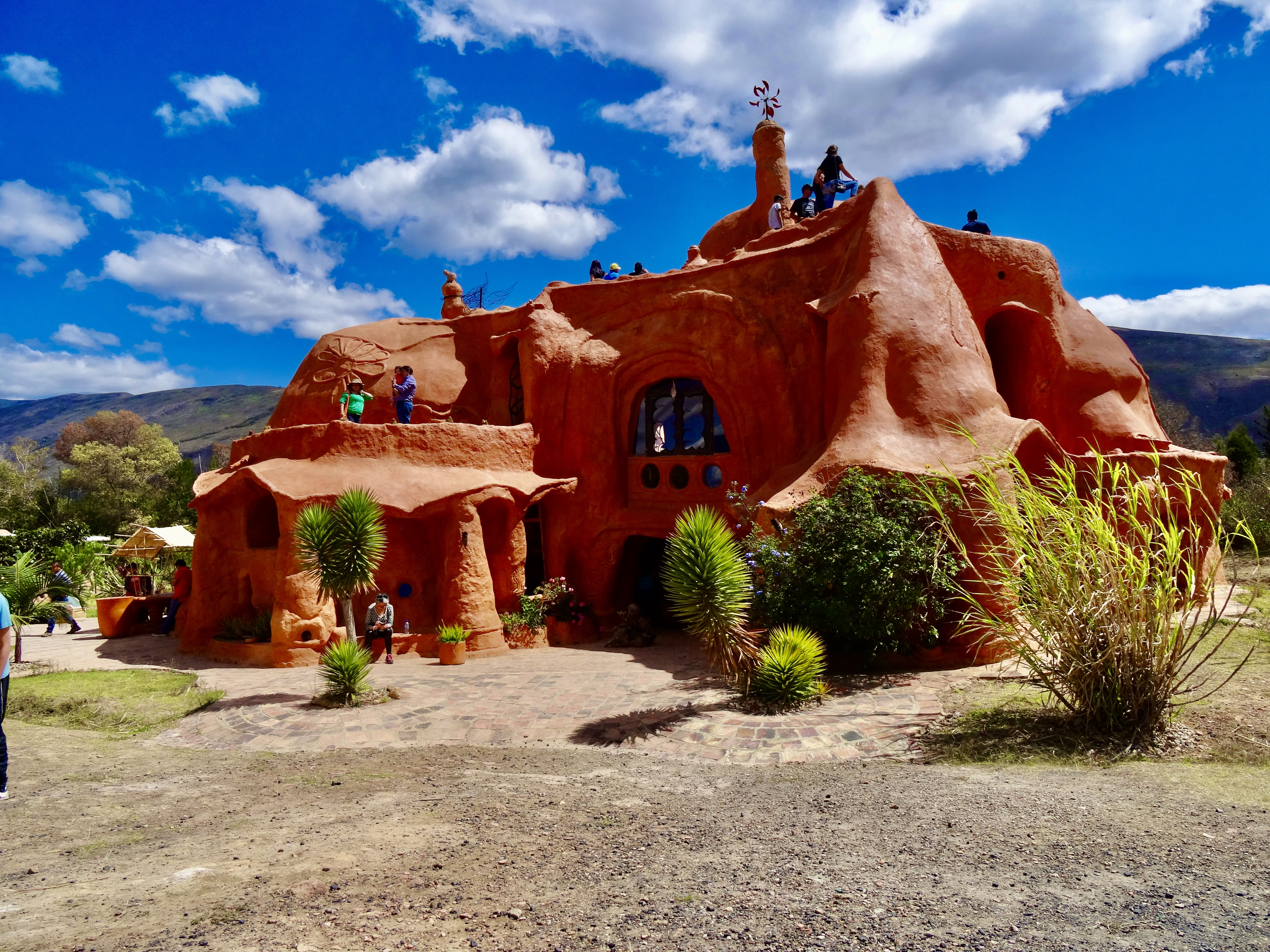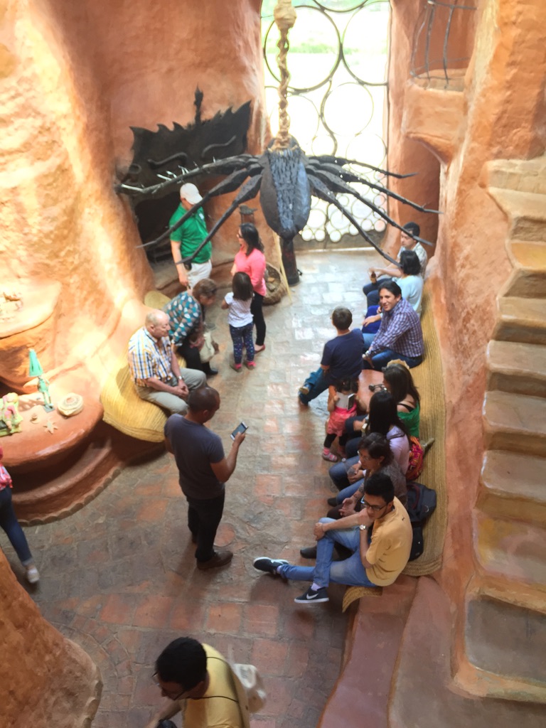 This morning we packed, had breakfast and on our way out of town headed to something called “Casa Terra Cotta” — a fantasy house designed and constructed by a Colombian architect named Octavio Mendoza — sort of “melted” Paolo Soleri… Locals call it the “Flintstone House”.. like a mound of clay that’s been baked. The house is more than 5,000 sq ft and is framed by the mountains. The organic form makes it look as if it was cast in a single mold which of course would have been impossible.