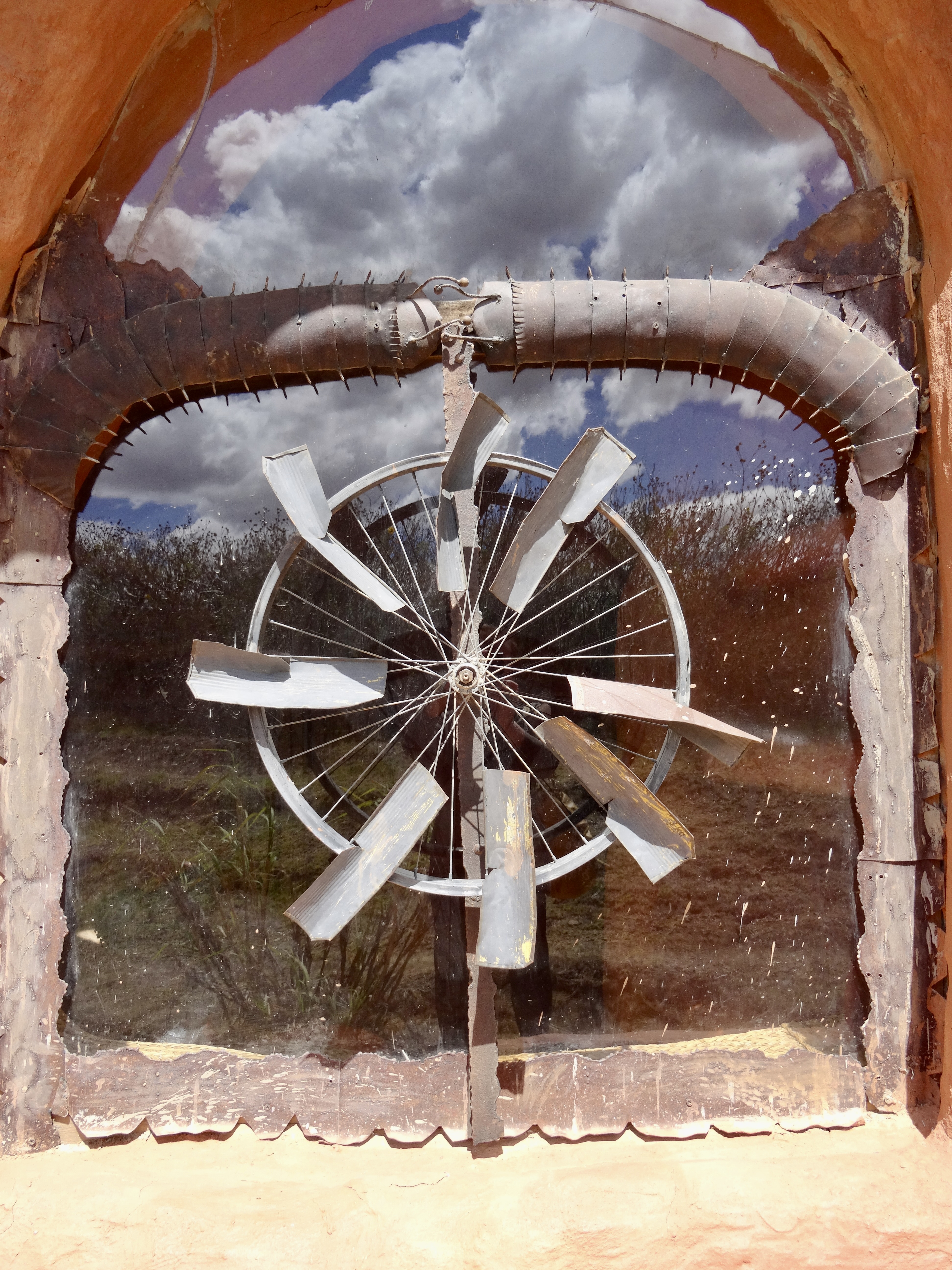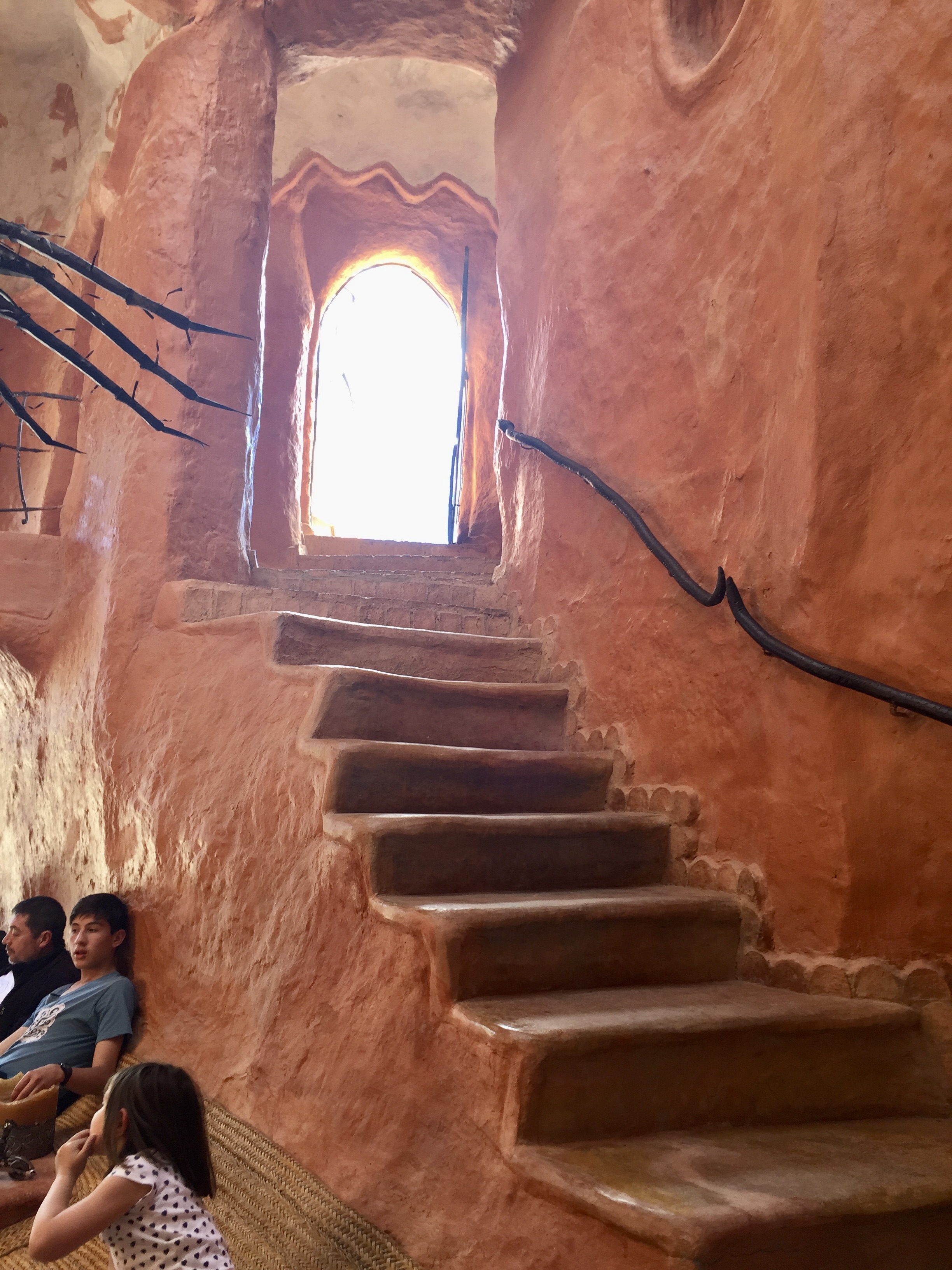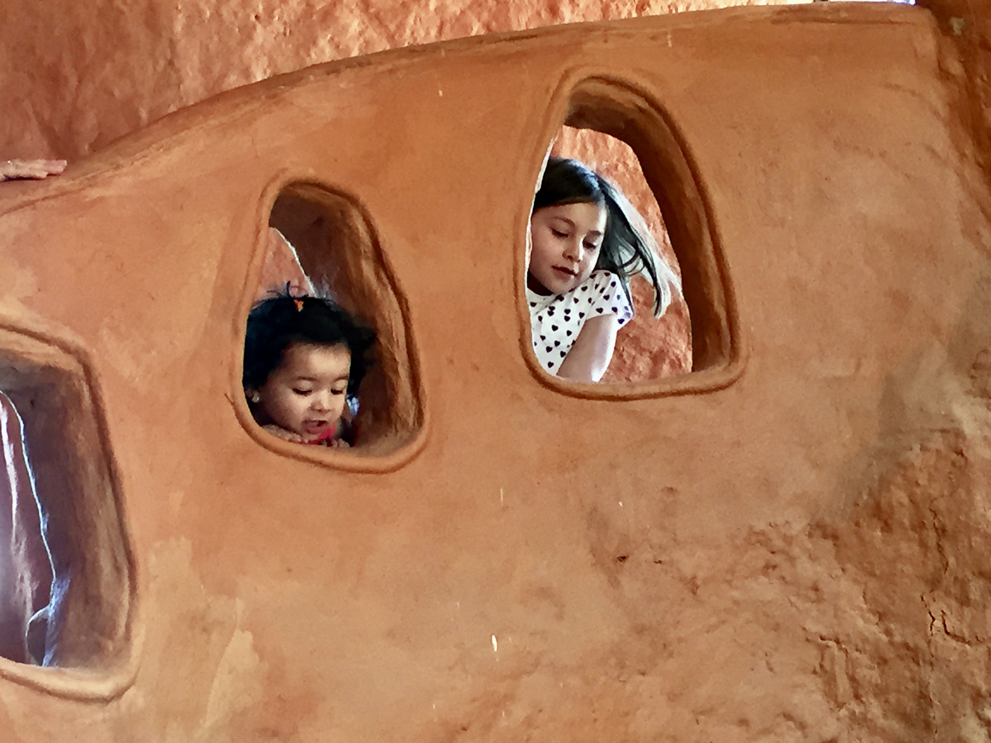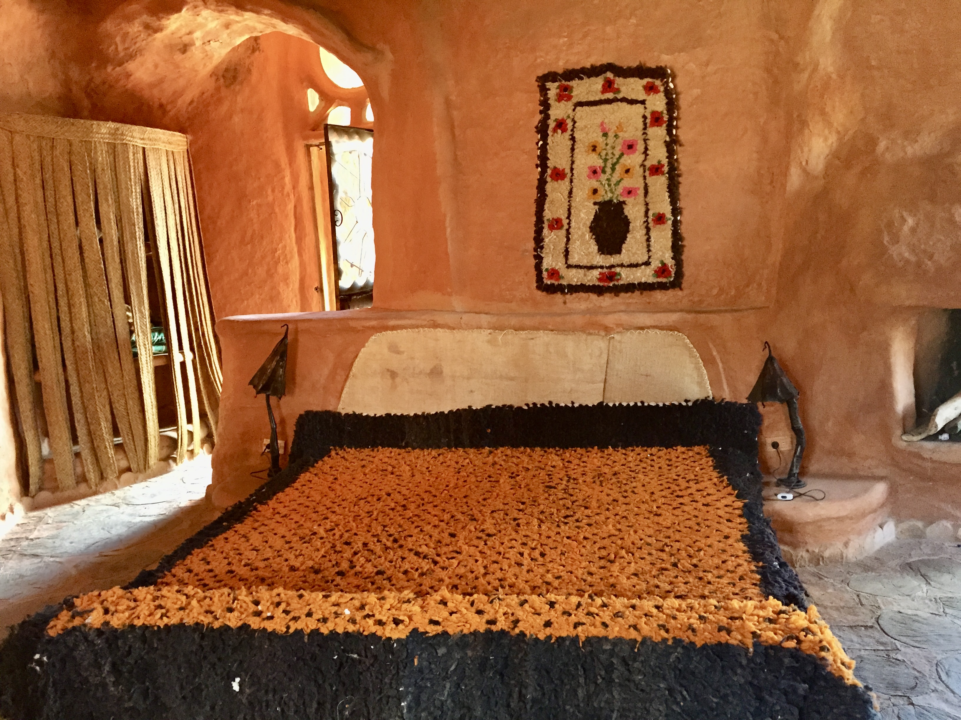 This morning we packed, had breakfast and on our way out of town headed to something called “Casa Terra Cotta” — a fantasy house designed and constructed by a Colombian architect named Octavio Mendoza — sort of “melted” Paolo Soleri… Locals call it the “Flintstone House”.. like a mound of clay that’s been baked. The house is more than 5,000 sq ft and is framed by the mountains. The organic form makes it look as if it was cast in a single mold which of course would have been impossible.
