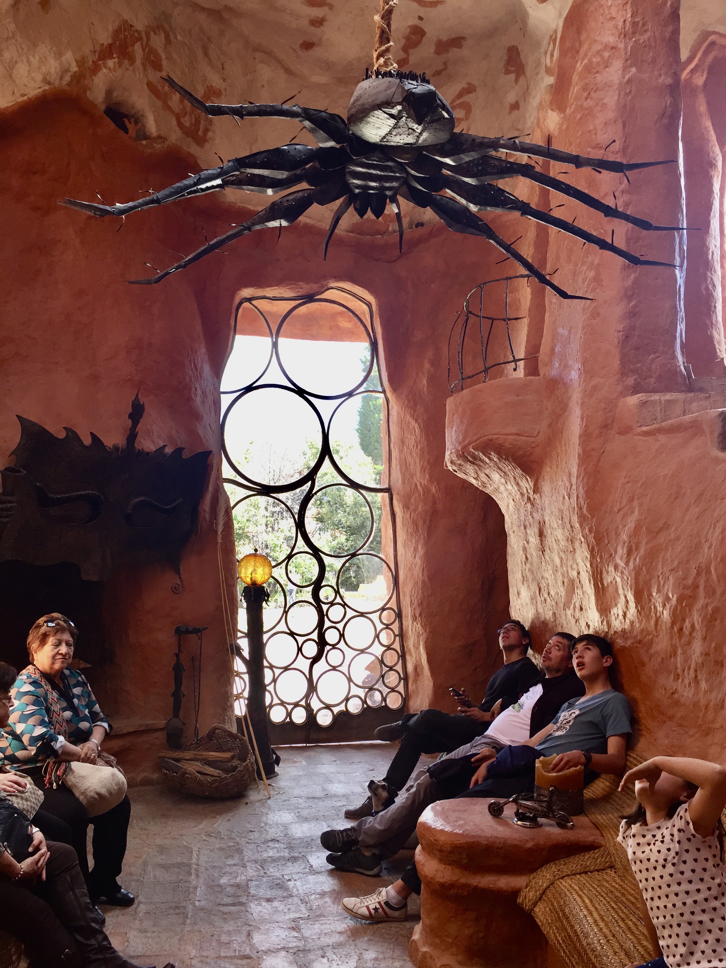 It took 14 years to build and is still sort of a work in progress.. There is no cement.. He’s also built and sculpted all the furniture which is also developed as huge bugs that become chairs or creatures that become lights..