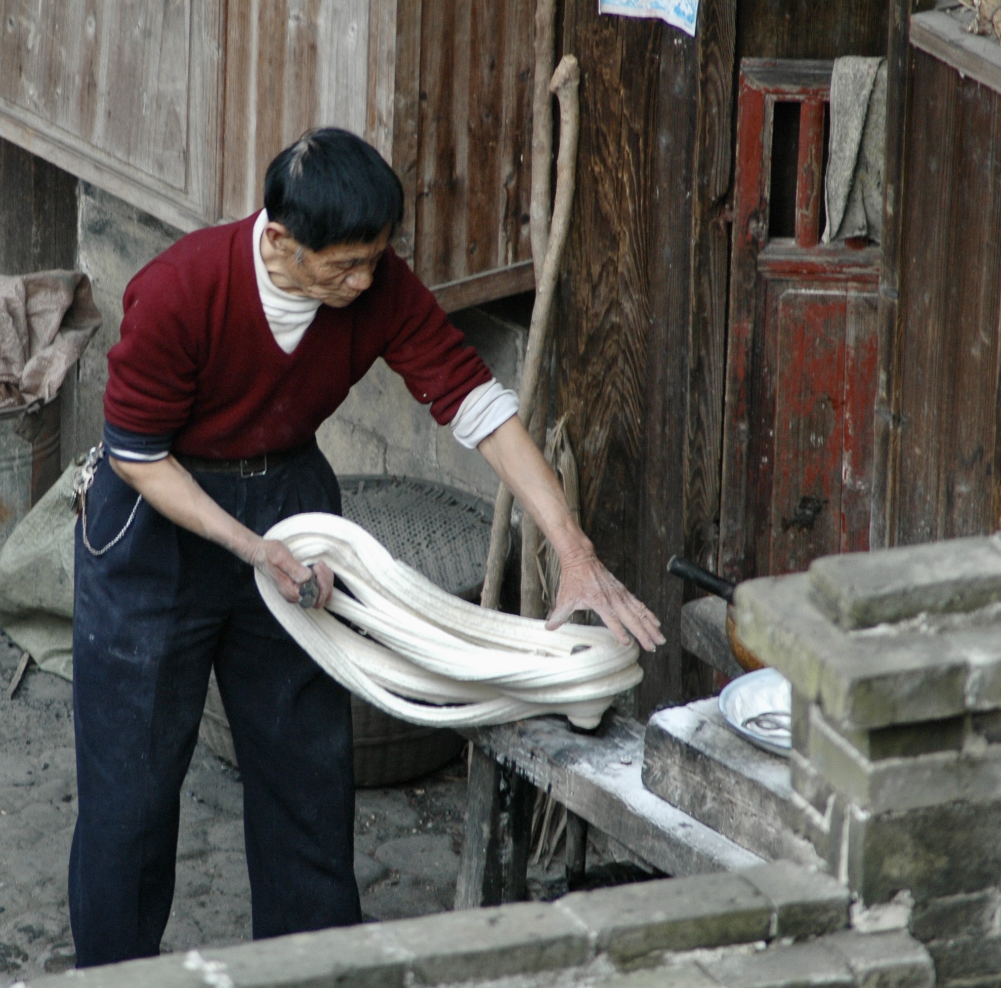 Greetings… Just photos of the tulous which are really amazing. And many of you have asked more about them and wanted visuals. So here goes — also a little noodle-making in the tulou courtyard (where they do everything.)