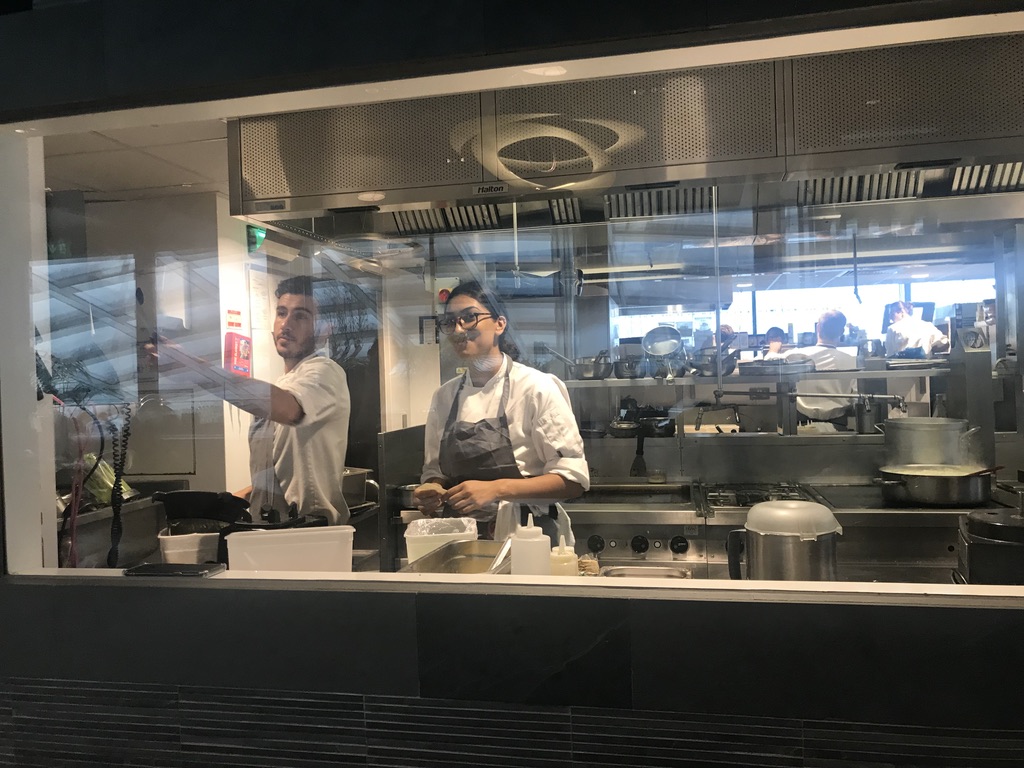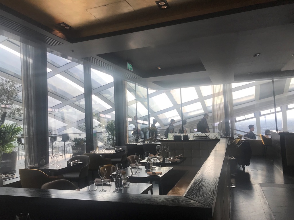 But as an amenity, the building has a public garden and great views of the city on the 34th floor. Lunch on the 37th floor was actually quite wonderful. Started with some kind of cod foam and tomato amuse bouche, followed by a beetroot and plum salad. Then my main course was the hake which was poached(?) sitting above a delightful set of the most thinly sliced tomatoes you could imagine. Then poached pear with tiny scoops of cardamom and also chocolate gelato.