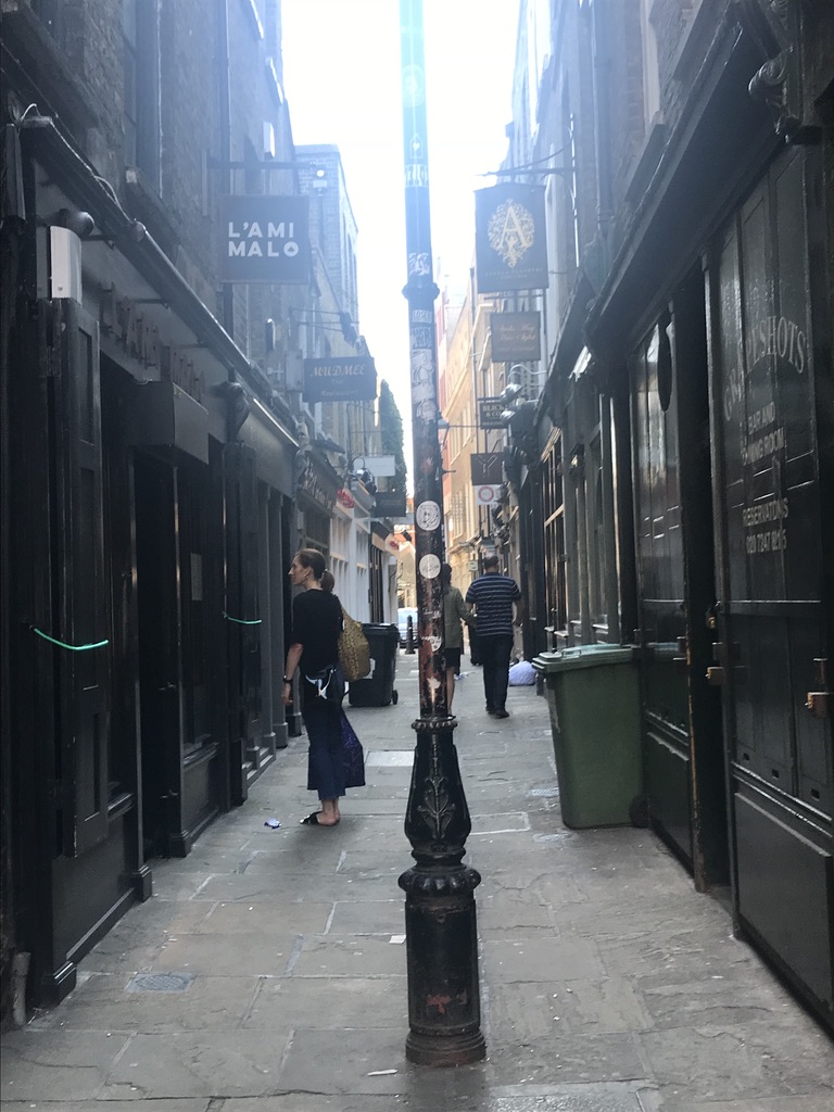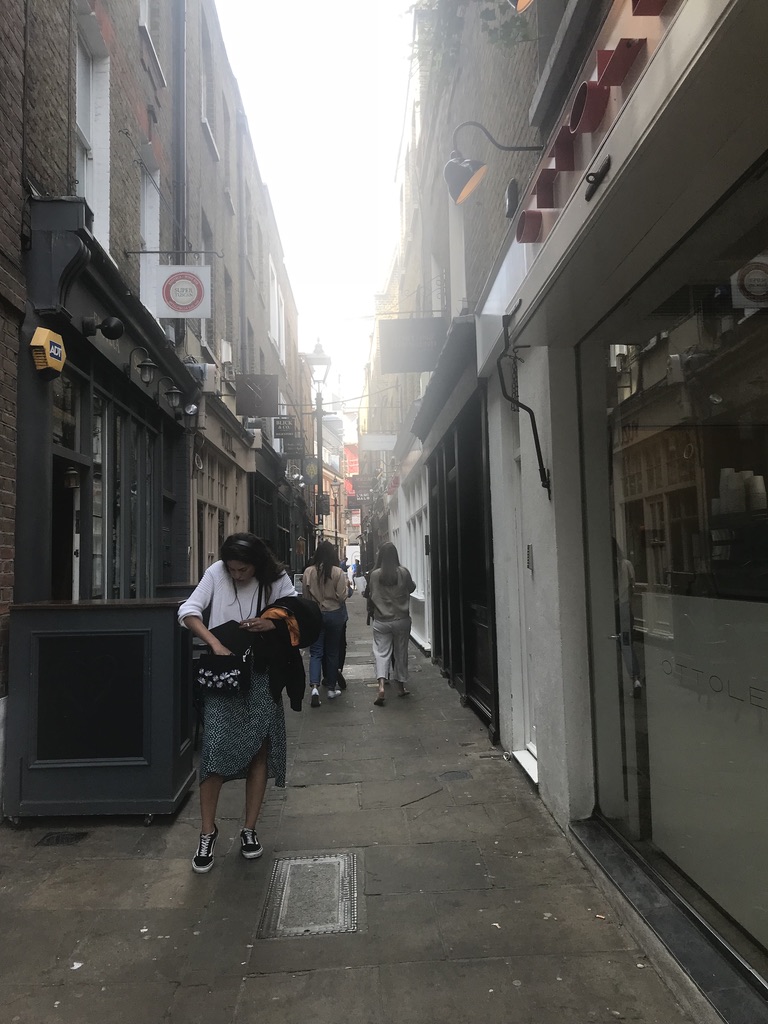 Started out at Spitalfield Market – and surrounds, great shakshuka at Ottolenghi …and some interesting pear and basil juice. Then ran a few short errands. The bag I was carrying somehow separated from the strap. I remembered from previous trips to London, that this particular neighborhood has a lot of little shops near the Underground station (Liverpool Street). So I stopped into a shoe repair place. And as I was having breakfast I realized that time was standing still – my watch battery was dead. So I also located a watch repair right next to the shoe repair.. and Voila! Everything fixed and ready for the day.