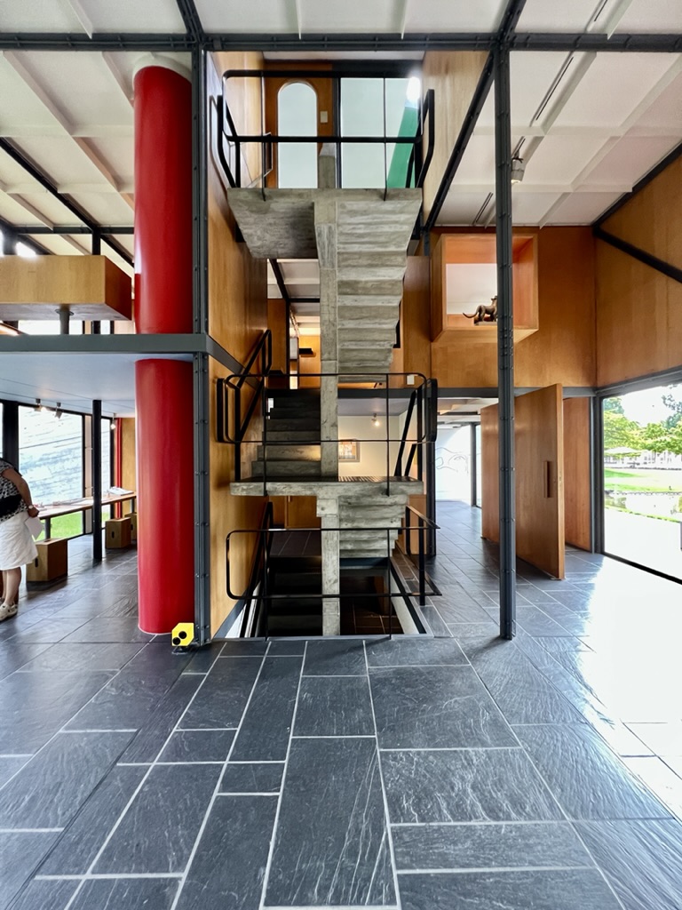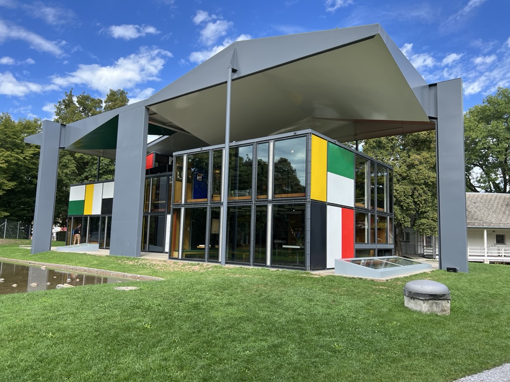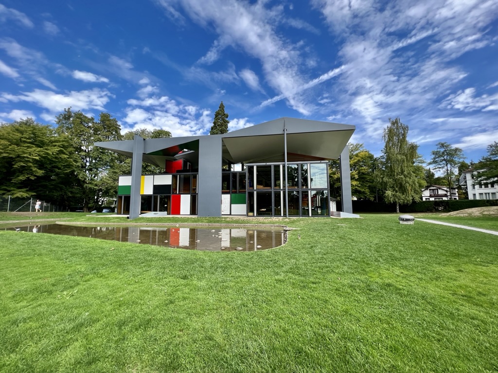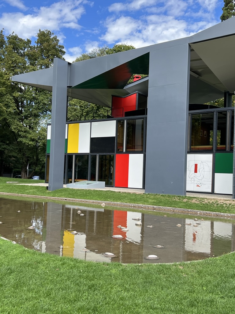 We then walked about 1.3 miles to visit Le Corbusier’s Pavilion (which we had seen many years ago). Apparently, it underwent some kind of renovation a few years ago and it is stunning… As wonderful as it was years ago. It’s a gem. It’s about a block from the “Zurichsee” and is at the edge of yet another beautifully maintained and immaculate park. From there we strolled back to the hotel to regroup and figure out the rest of the day. We stopped for a salad at an outdoor café and then of course had to have our daily fill of gelato (which is quite wonderful here and is offered in about 30 different flavors). Me- pistachio; Mike- banana.