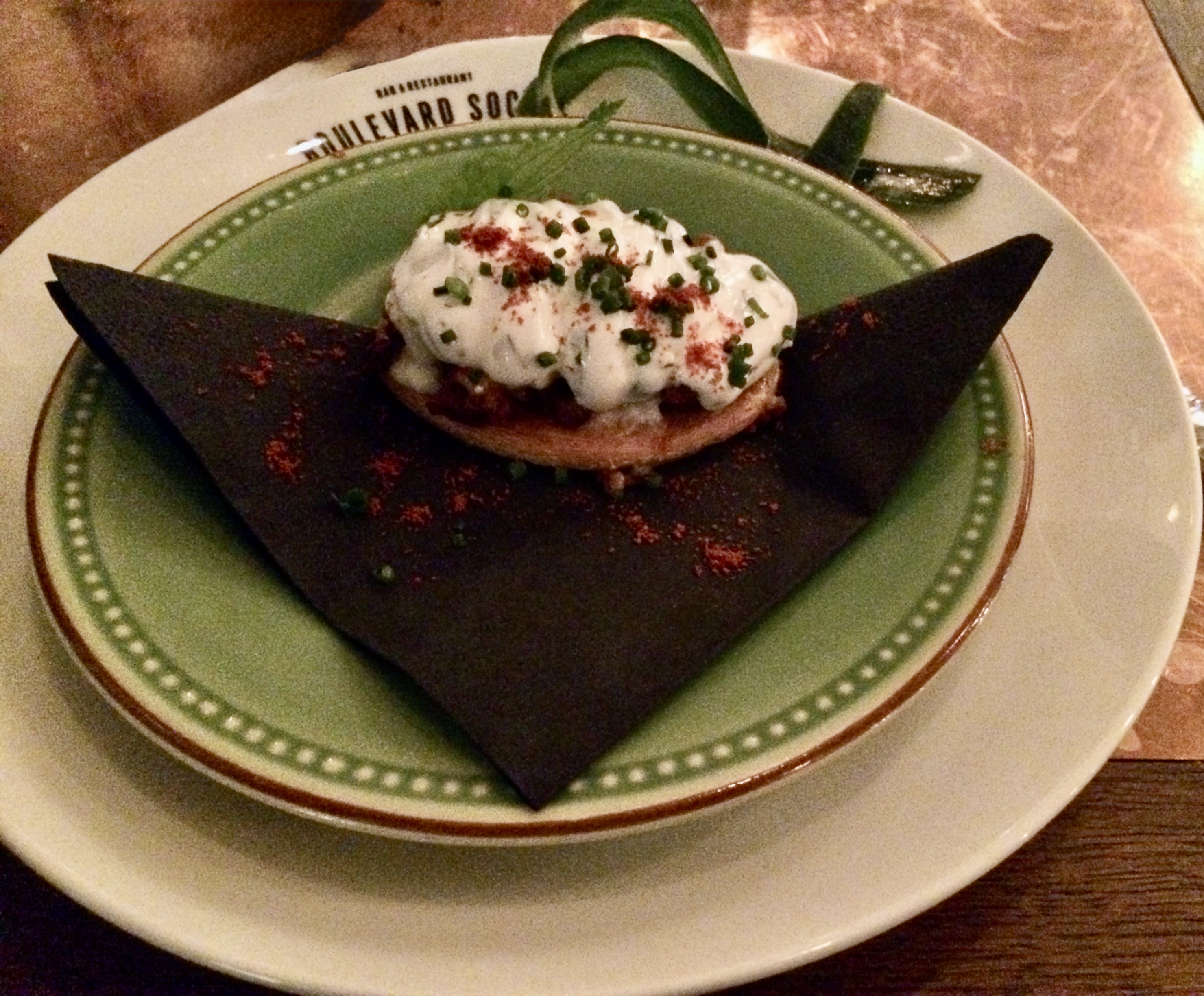 We started with Brio’s version of a Oaxacan Margarita (with mezcal of course). It was sweeter than a typical margarita and also served more like a martini. It had a foam and some local herbs. We ordered the roasted tomato cream soup which was fantastic and then shared the short ribs which were in a black mole and cooked with some vegetables. It, too was very good. And we ended with cheesecake served with a caramel mousse on the side. Brio was a good choice.