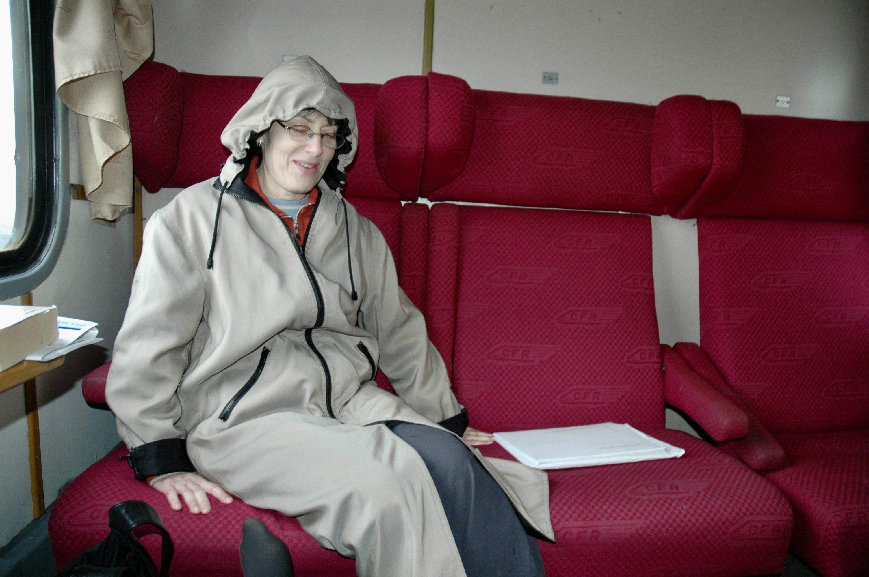 The next morning we got to the station extra early, in spite of having the tickets, and navigated to the track number written on the tickets. We found the track and the car and I said to Adrienne “I think this is the wrong train.” It was very old and rickety; the cabins were old with less than modern conveniences. “This cannot be the ‘fast’ train!” To which, Adrienne said very clearly: “Here’s the ticket. It says this track. It says this train number and this cabin.” I thought we should go back to the ticket window to find out but Adrienne was convinced that we’d miss the train. From the window of “our” train, I could see a shiny new train on another track. I said we should investigate because that was likely our train. but I didn’t want to argue, so we sat in the cabin. It was about 5:45 a.m. The other two passengers came into our cabin. They didn’t speak English but Adrienne cheerfully said “I guess the train will leave soon, since it’s 5:45 and it leaves at 6 am.” There was no response.